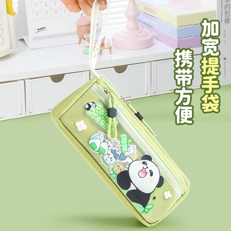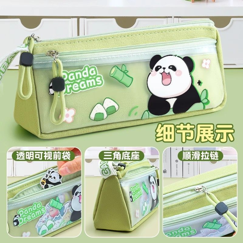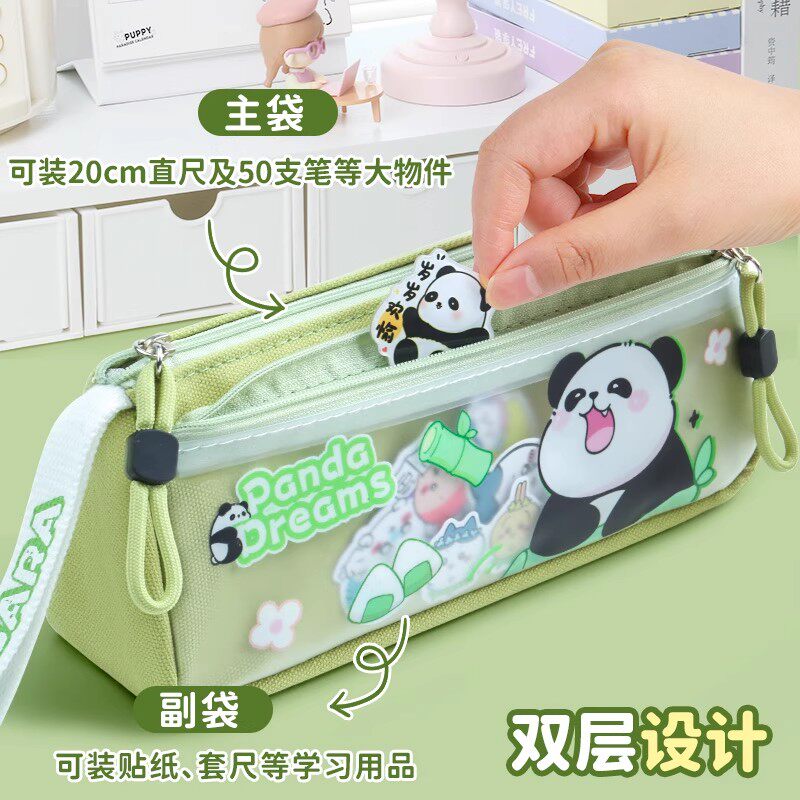熊猫双层笔袋女孩小学生用高颜值女生2025新款超火文具盒女孩款男孩铅笔袋简约初中一年级大容量铅笔盒文具袋