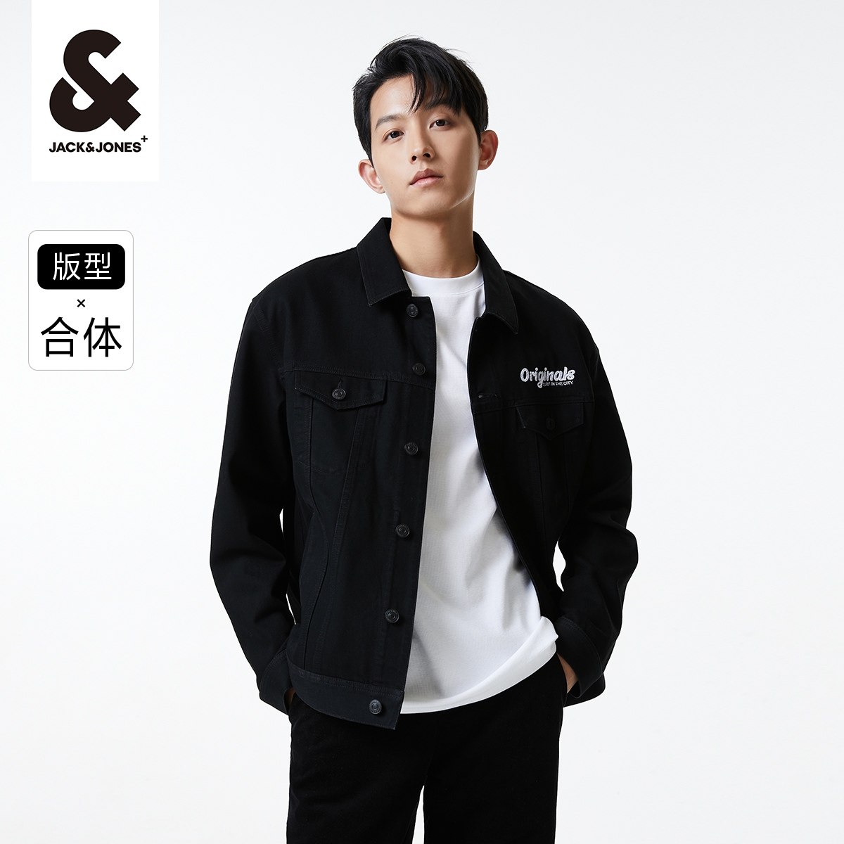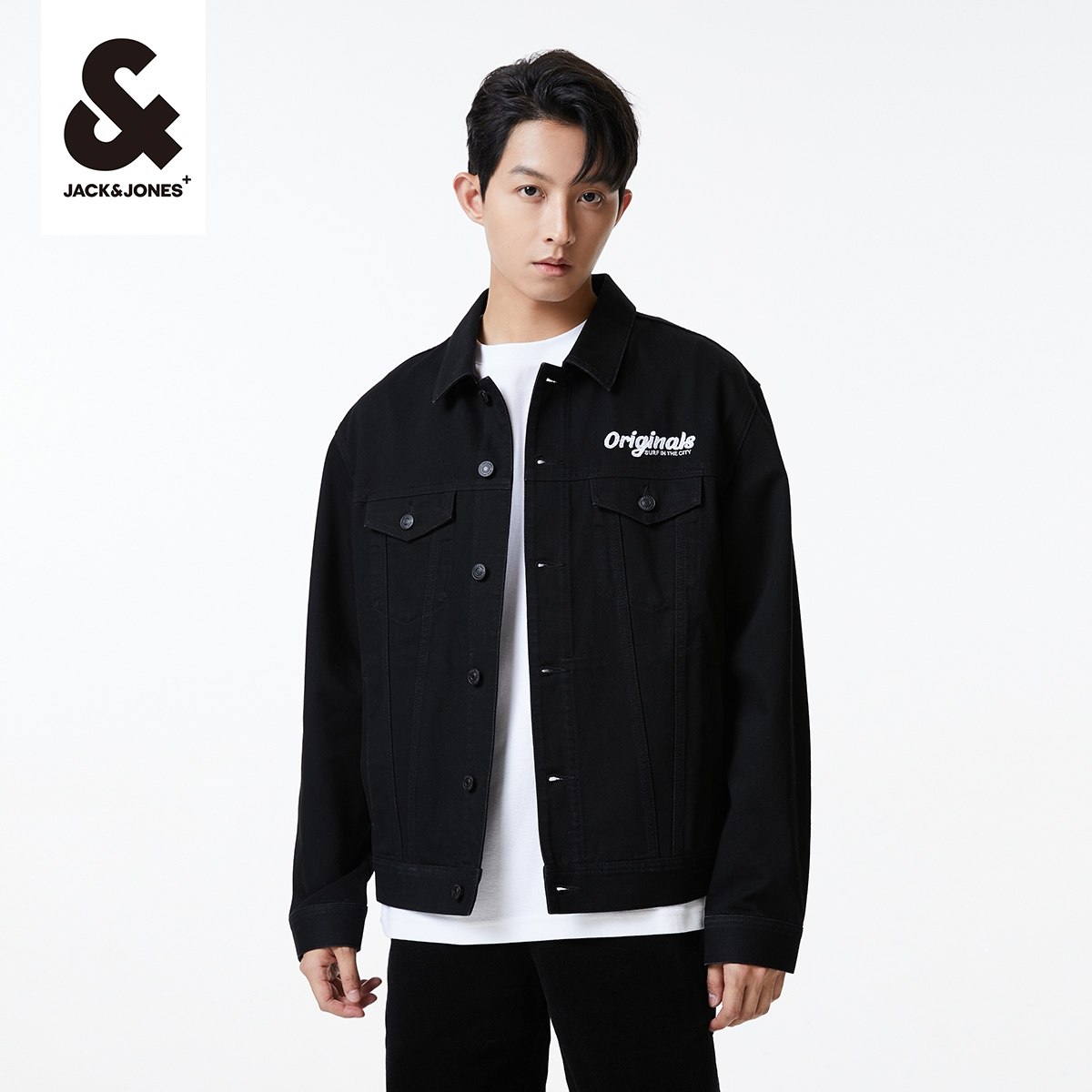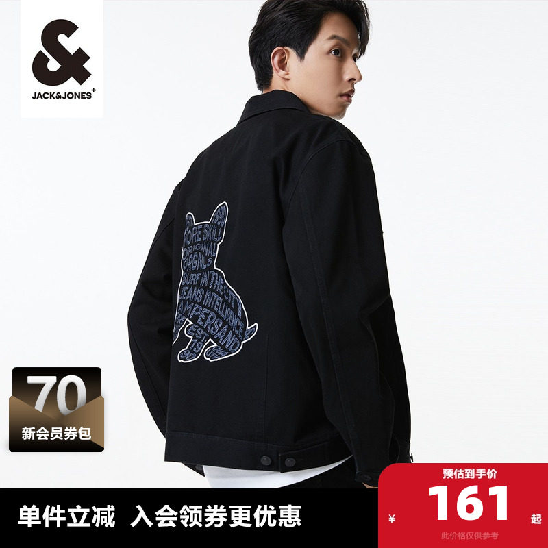 杰克琼斯男装夹克 外套春季水洗直筒撞色立体法斗刺绣牛仔男装