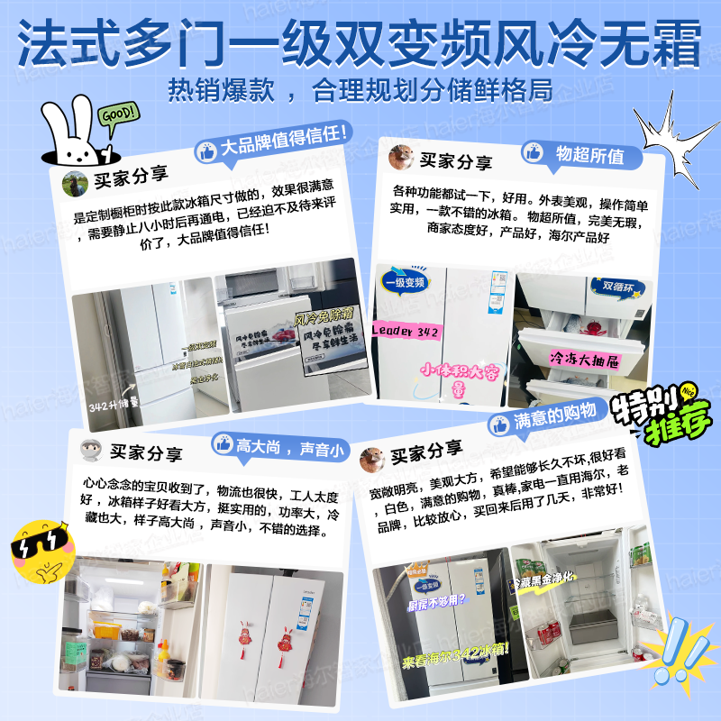 Z海尔冰箱342L法式多门双开门四门超薄一级双变频风冷无霜leader