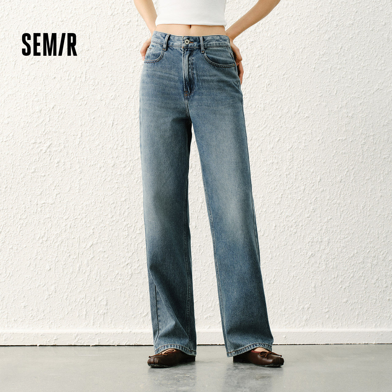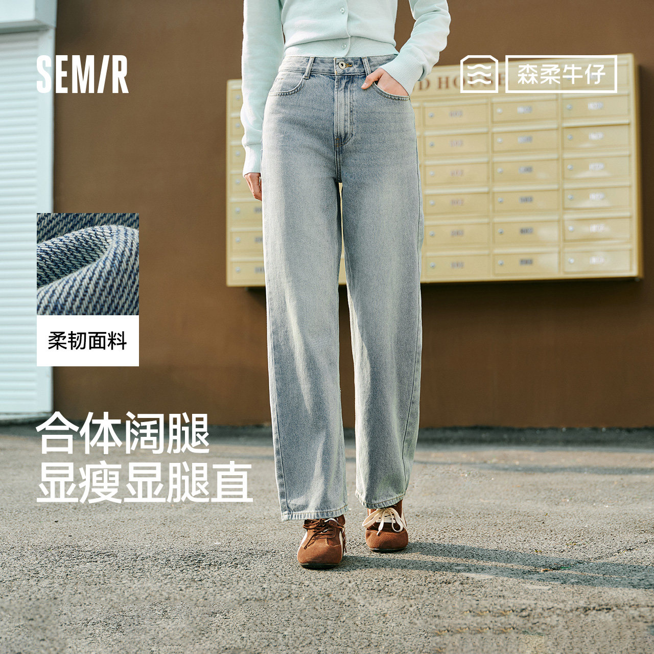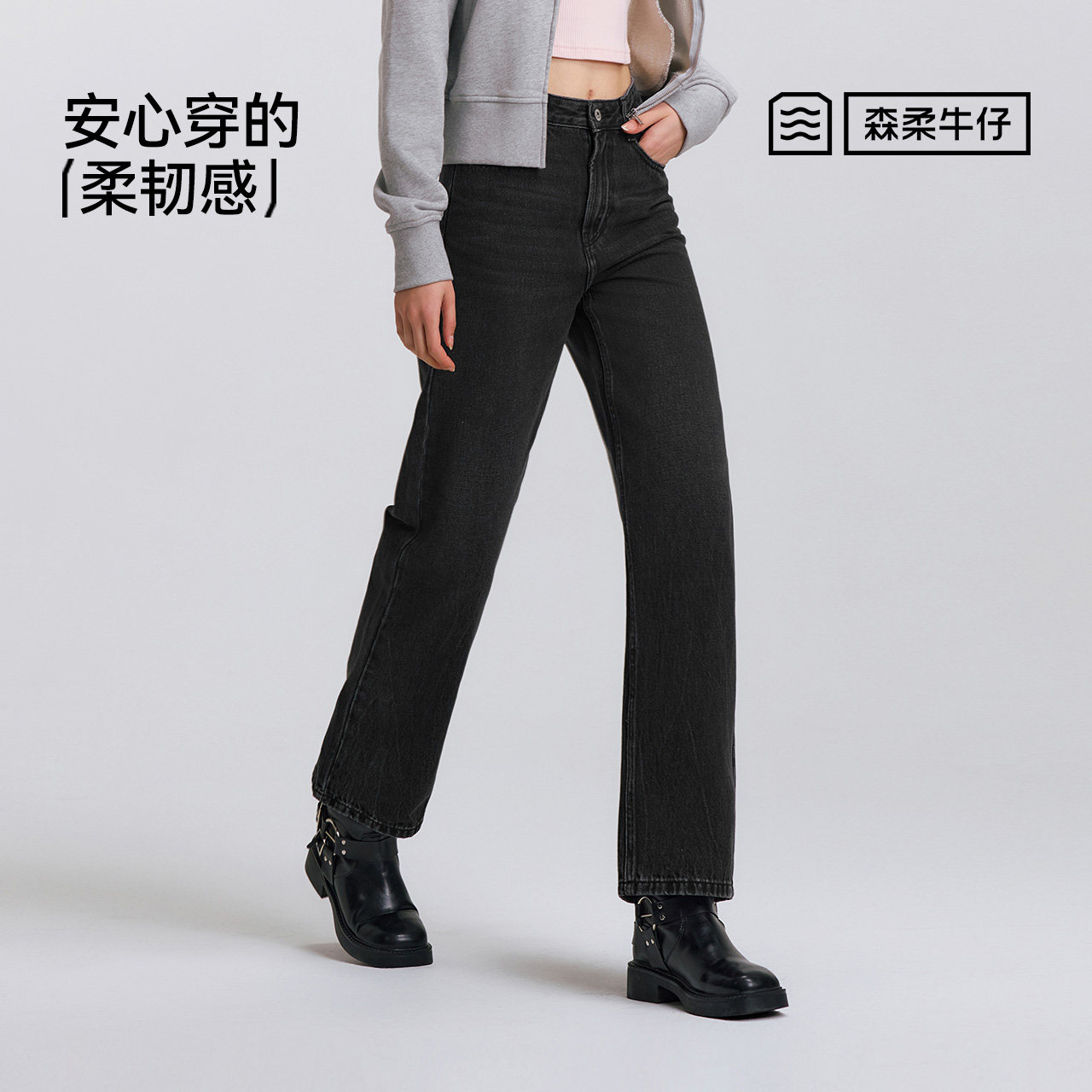 森柔|森马牛仔裤女春季含莱赛尔做旧长裤舒适基础复古百搭阔腿裤