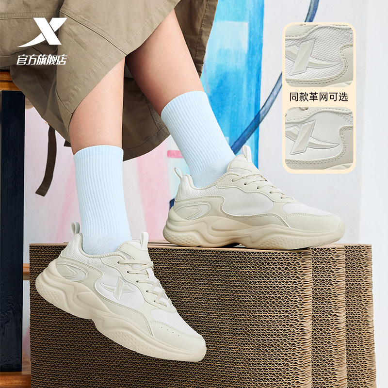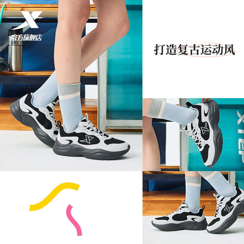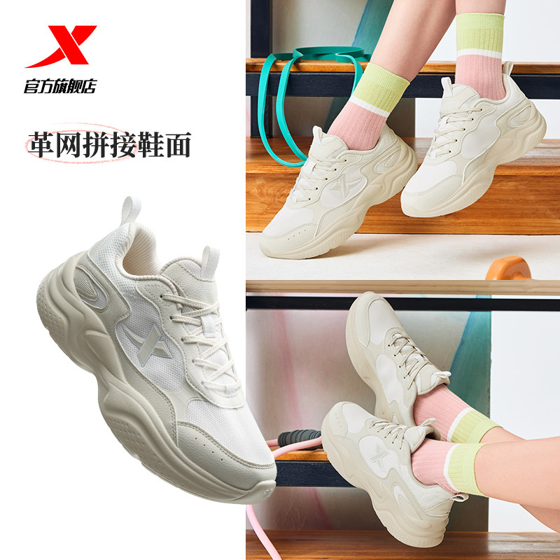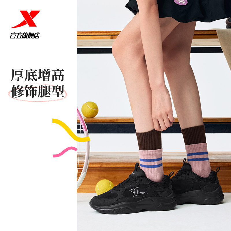 特步星晴丨厚底增高休闲鞋女鞋冬季革面轻便软底运动鞋百搭老爹鞋