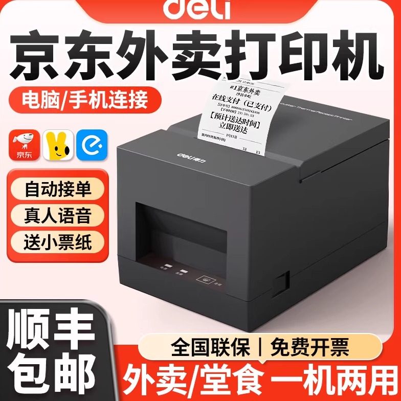得力京东外卖打单机自动接单手机蓝牙京东秒送wifi商用美团饿了么出餐收银票据机外卖标签热敏小票打印机