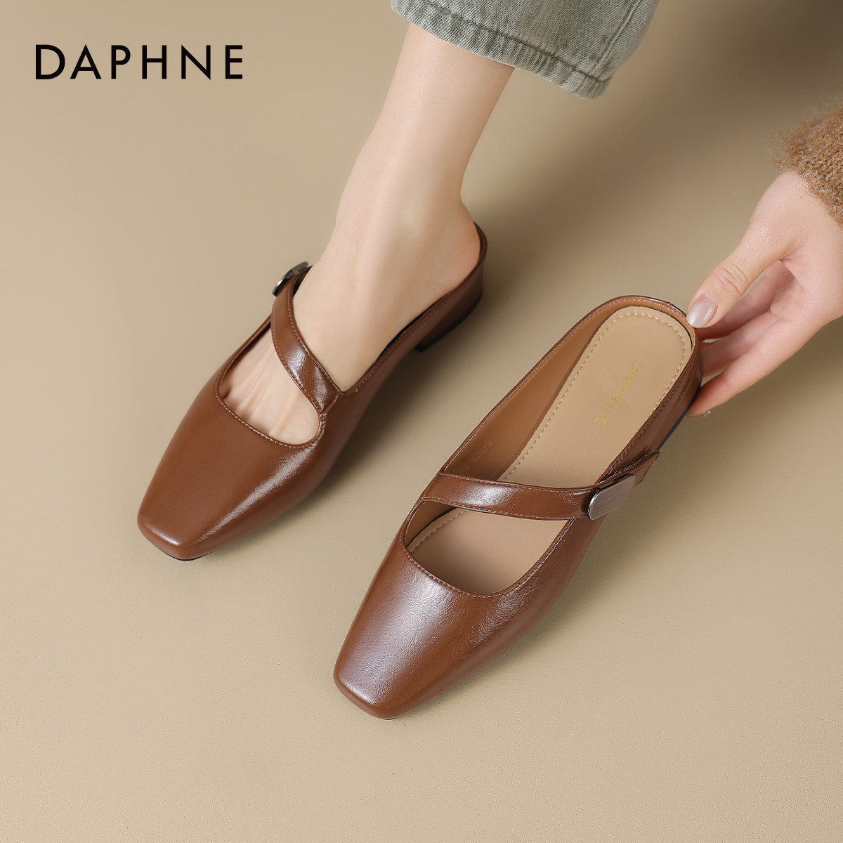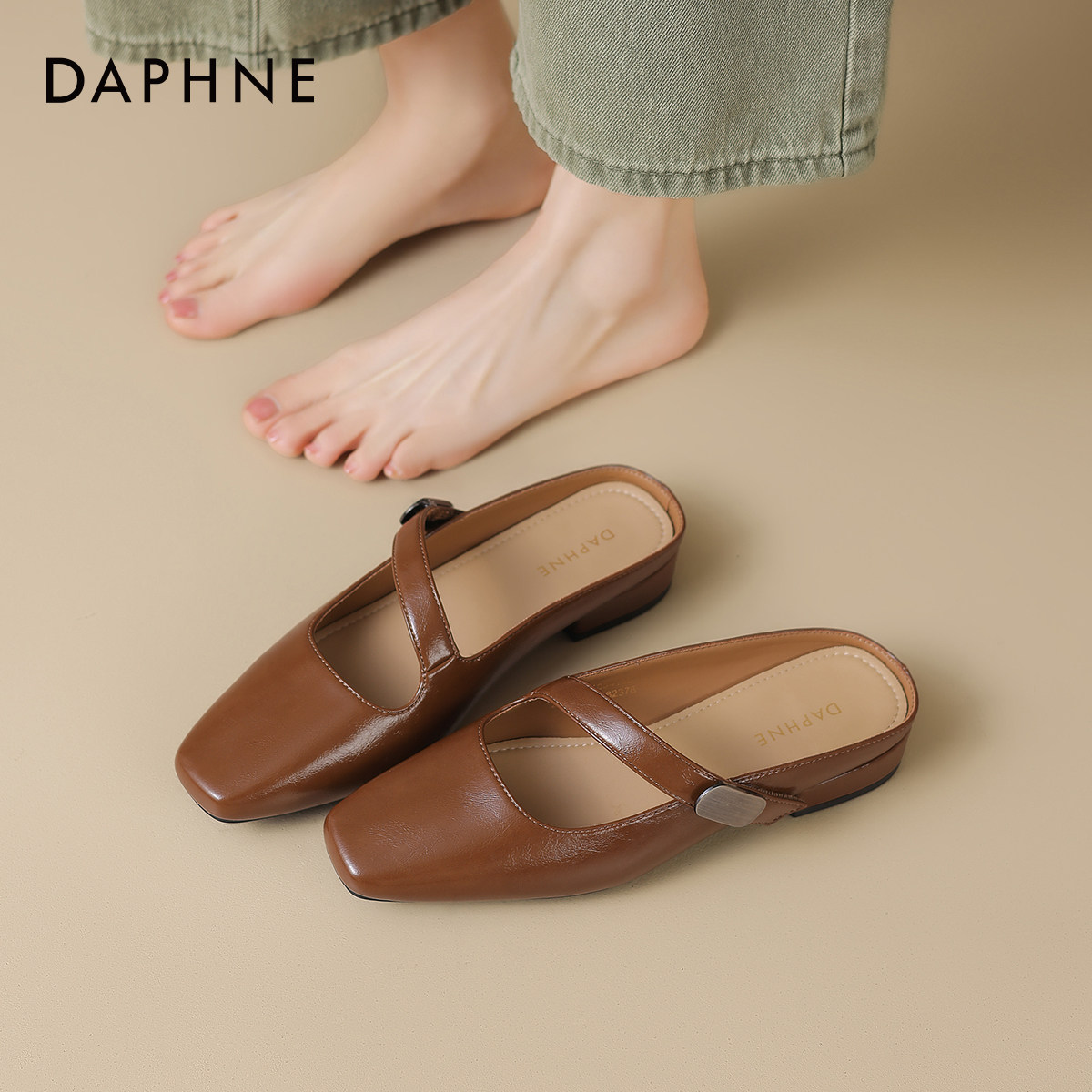 达芙妮包头半拖鞋2026新款夏季外穿平底穆勒鞋法式一脚蹬懒人凉鞋