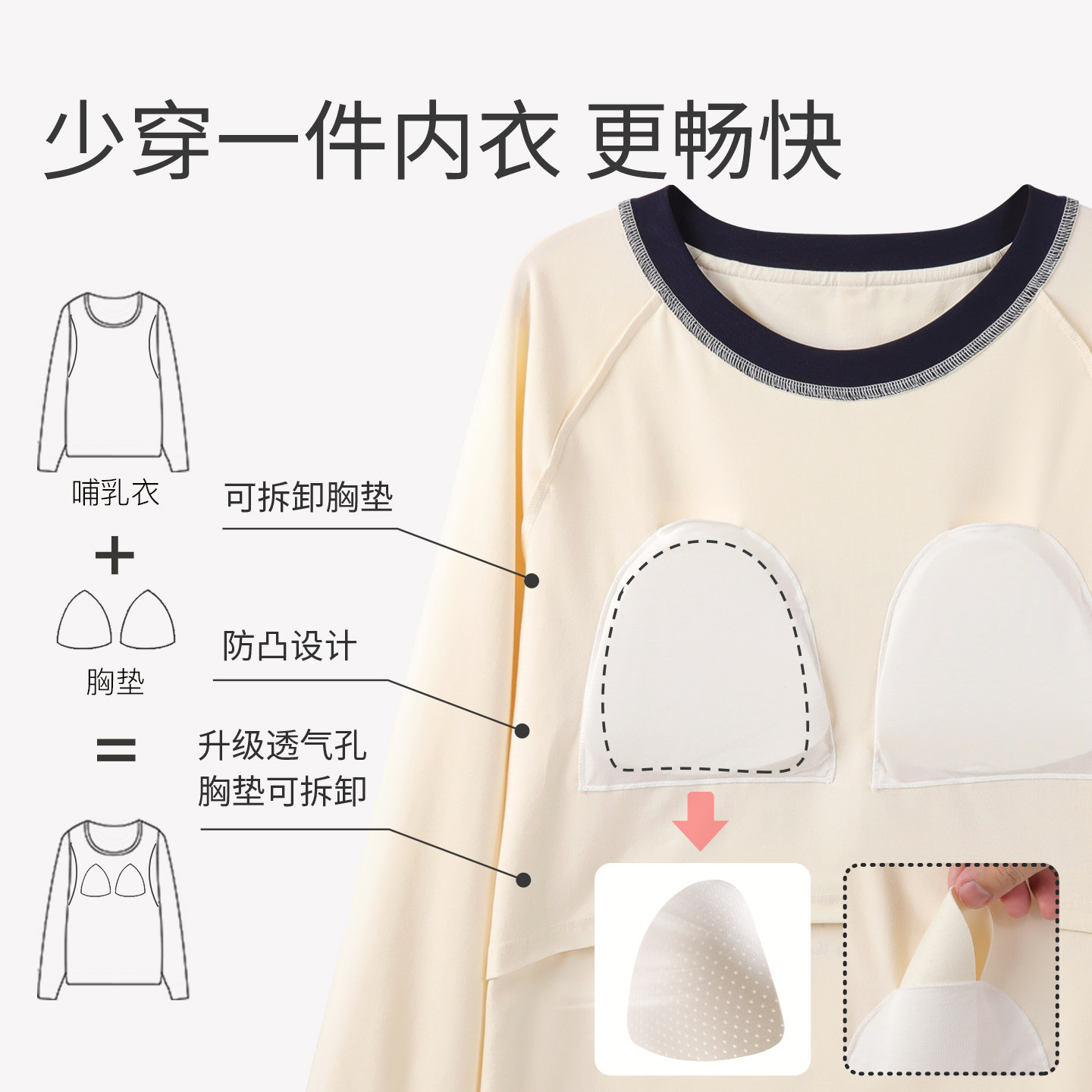 哺乳上衣秋衣单件内搭保暖孕妇打底衫外出喂奶秋冬款月子服带胸垫