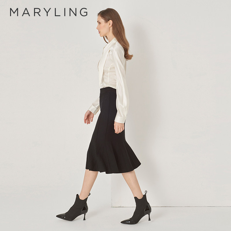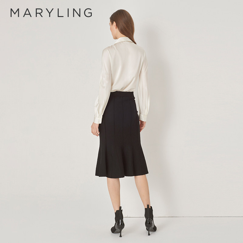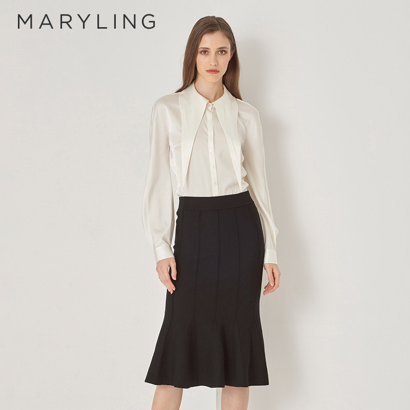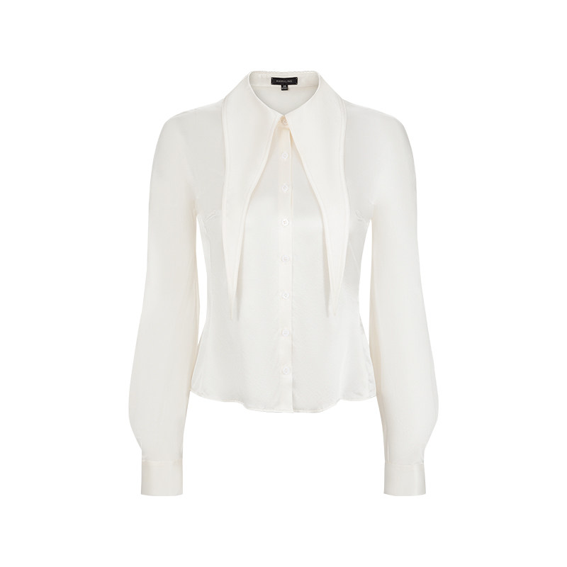 MARYLING玛俪琳秋季新品米白色剪刀领收身真丝缎衬衫A1DGW20290