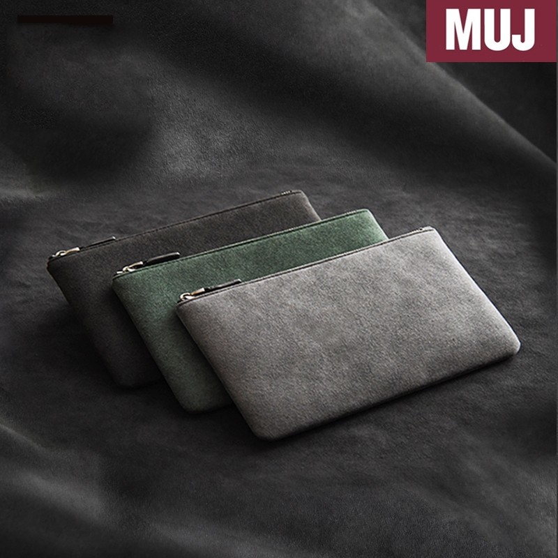 日本MUJ男士翻毛皮手拿包商务手抓新款手包简约手机信封钱包出行