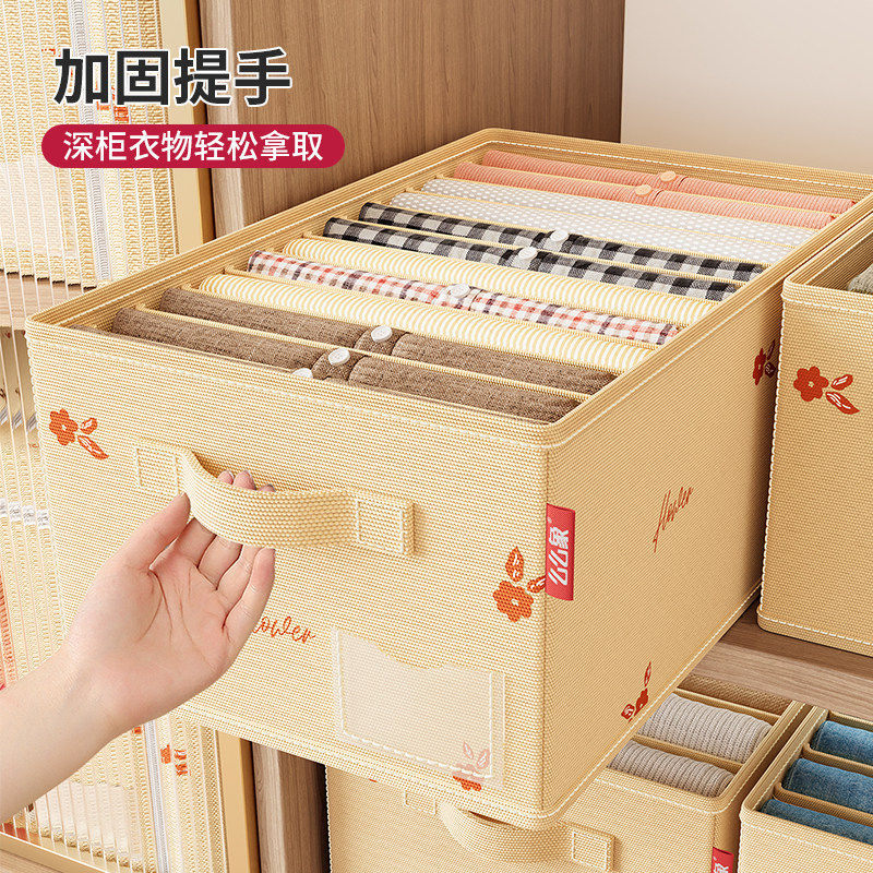衣服收纳箱家用衣柜分层整理盒放衣物裤子布艺棉麻折叠储物筐神器