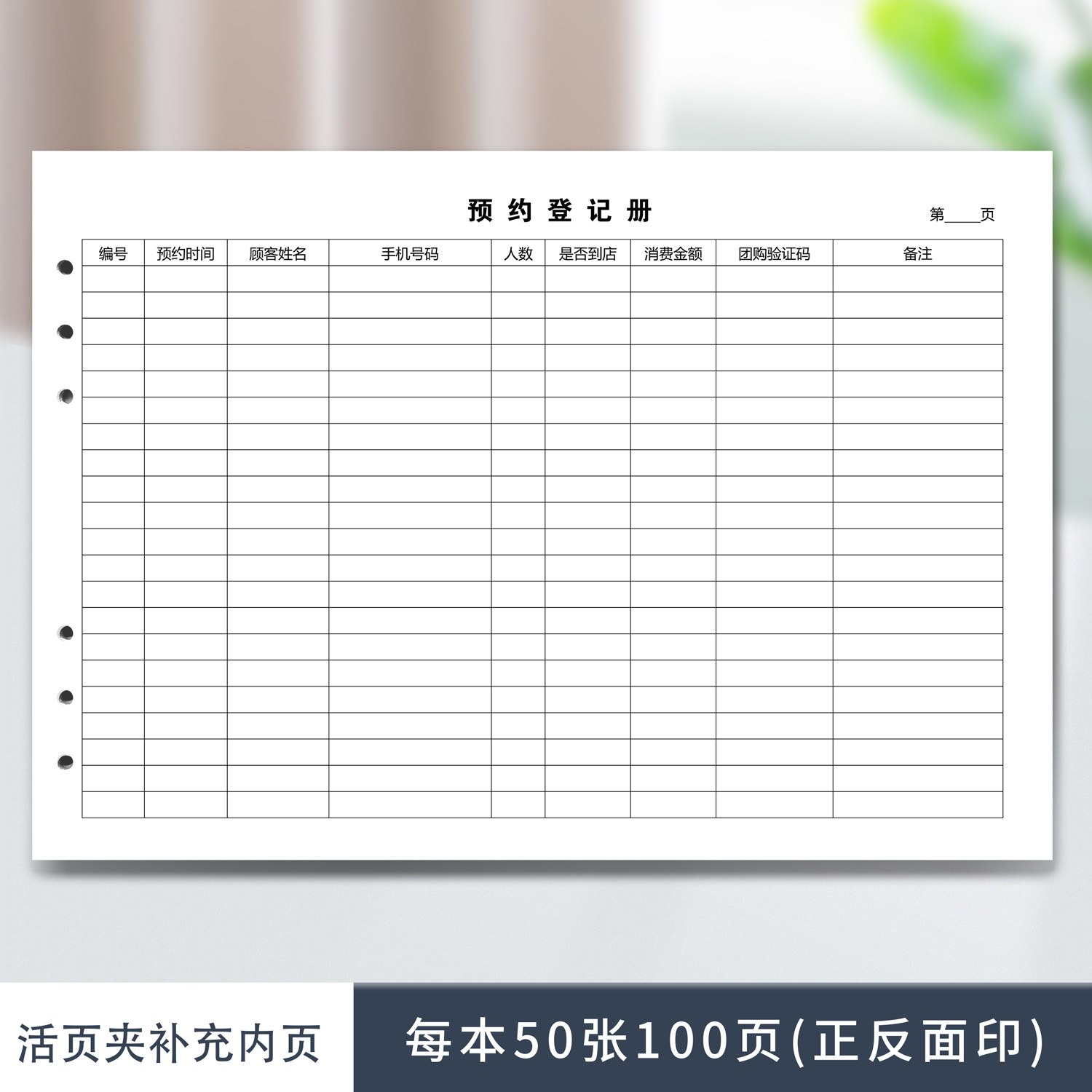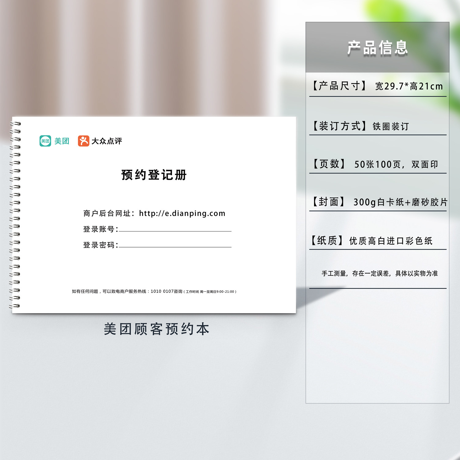 美团顾客预约登记本大众点评登记表酒店饭店宴会酒席餐厅预定包厢前台记录本餐馆美团订餐明细表取餐表可定制