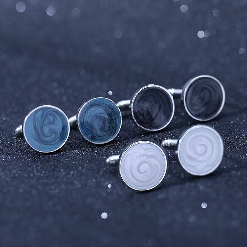 时尚圆形金属袖扣男士法式衬衫商务正装袖钉