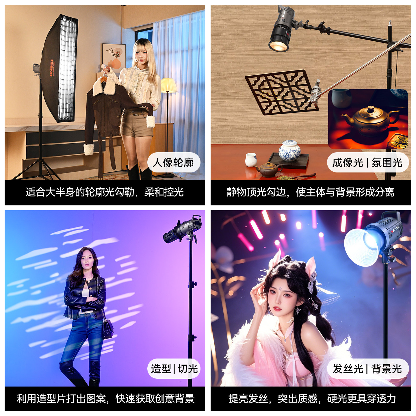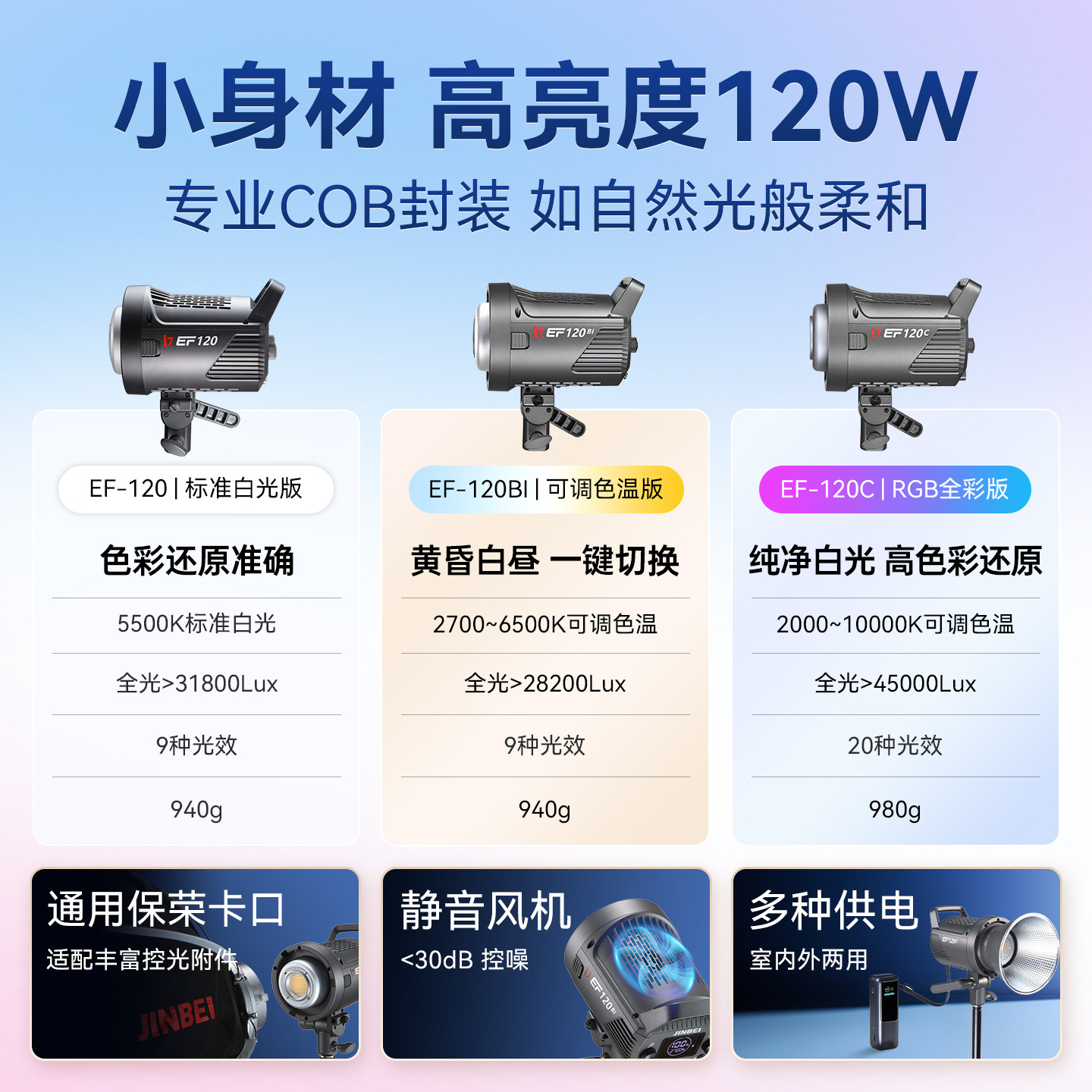 金贝EF120W/BI双色温摄影直播补光灯主播专用美颜柔光户外拍照视频rgb全彩氛围背景打光人像发丝灯led常亮灯