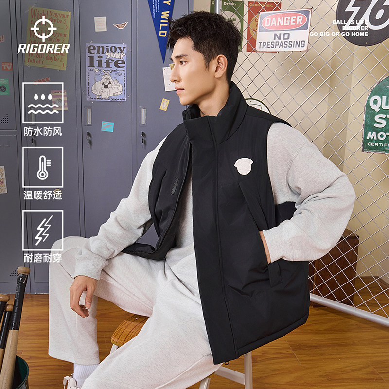 准者运动棉马甲男士冬季新款防风保暖立领棉服跑步背心夹棉外套男