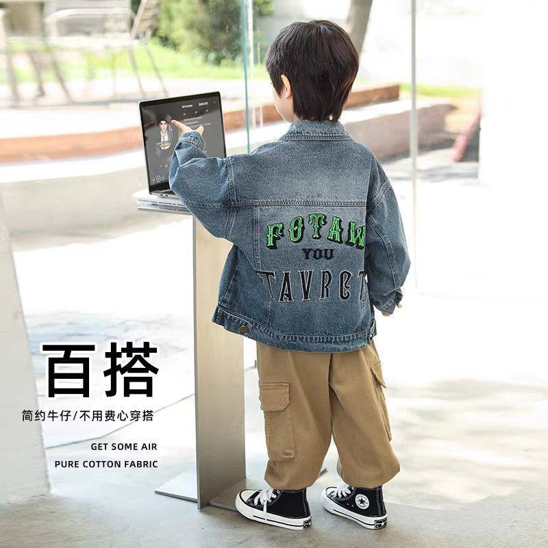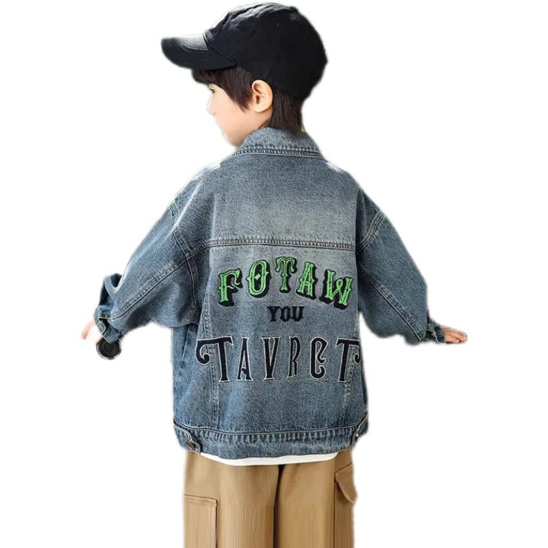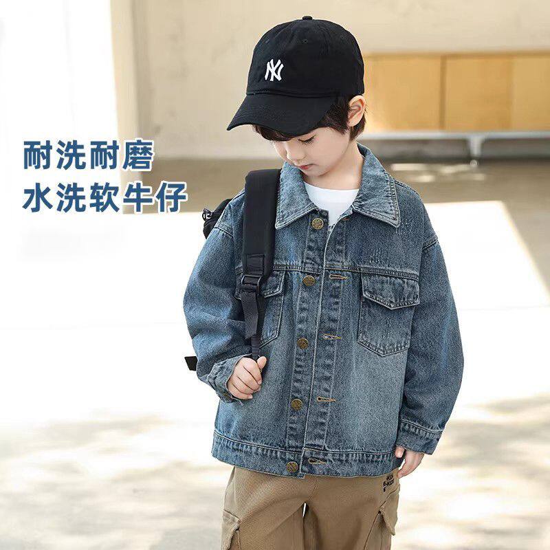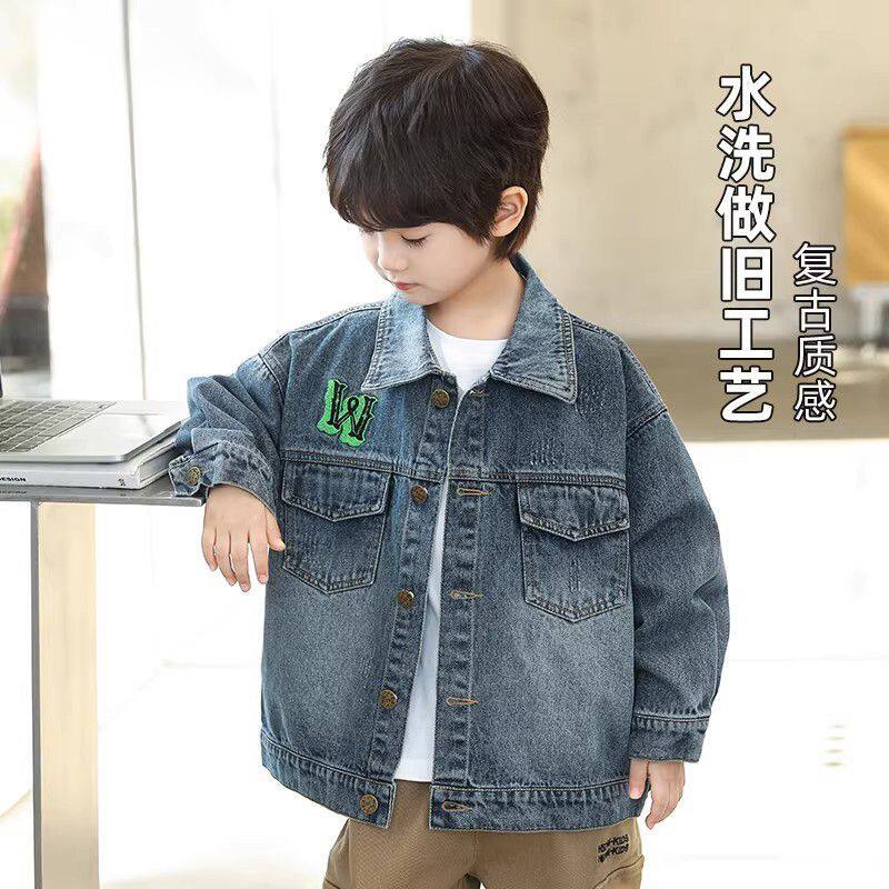 童装复古做旧水洗牛仔衣中大童简约质感春秋外套男童百搭刺绣上衣