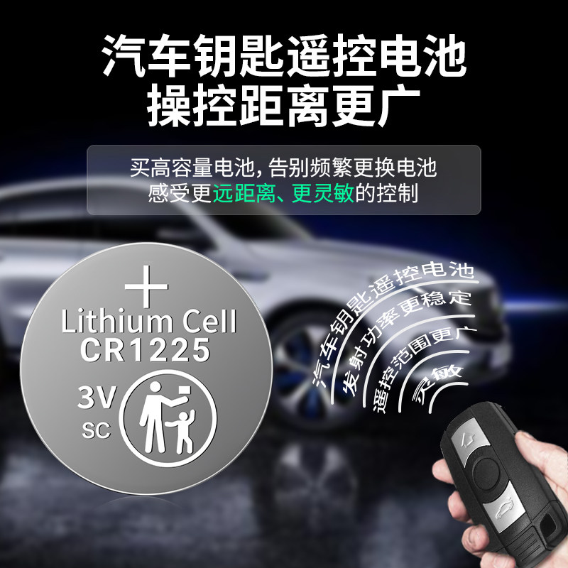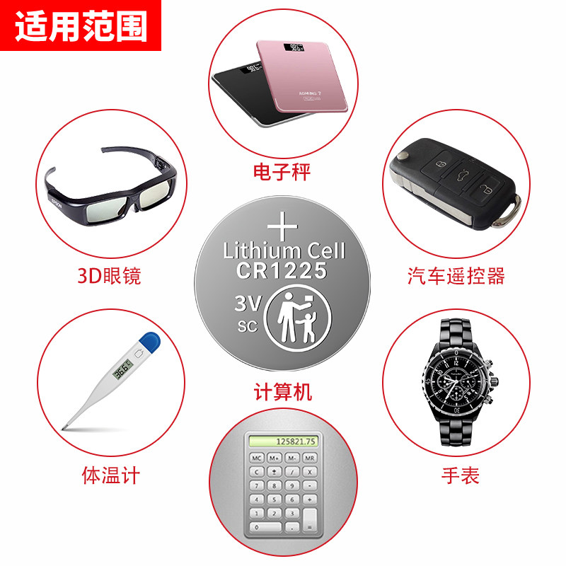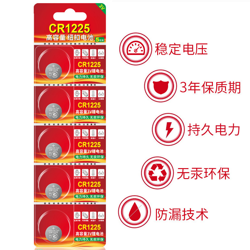 纽扣电池CR1225适用于小型玩具闪光灯条体温计3D眼镜车钥匙计算器电子夜光小闪灯手表CR1225智能3V锂电子