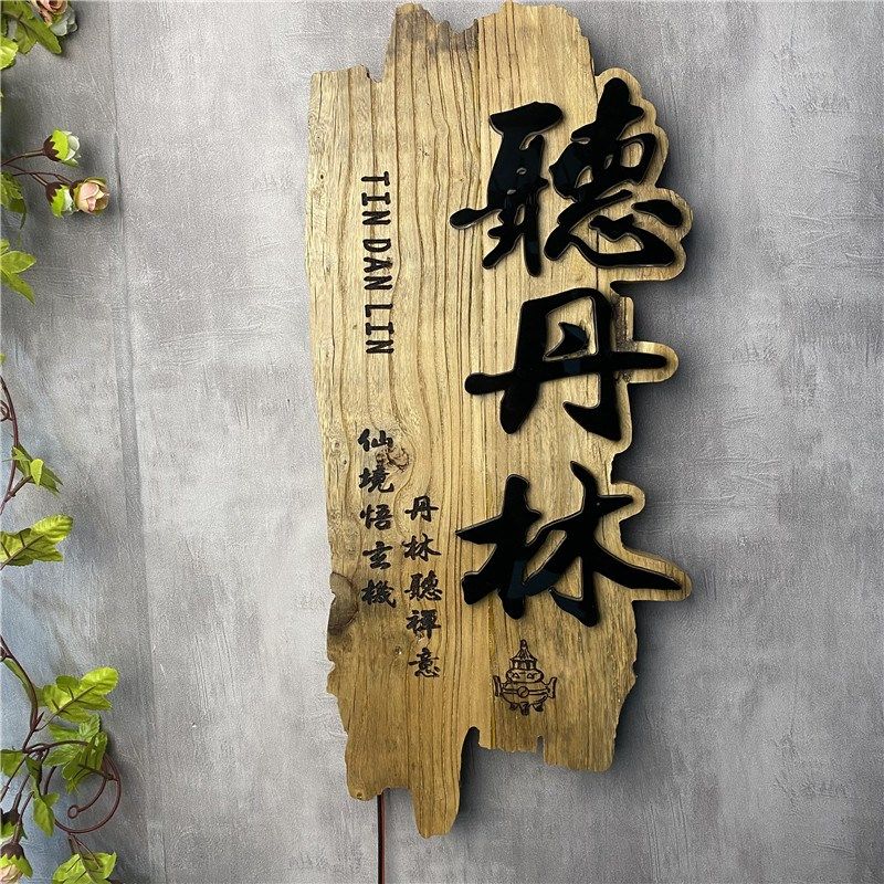 木雕发光招牌仿古做旧茶室门头实木牌匾定制浮雕装饰挂牌木牌雕刻