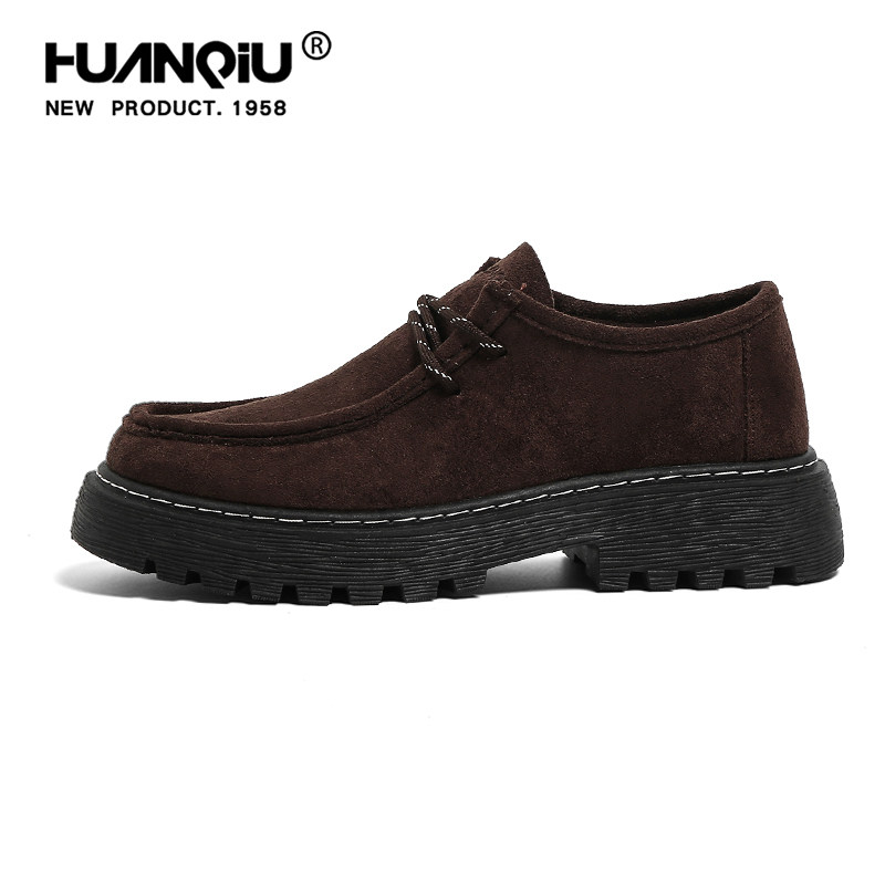 马登工装莫卡辛复古老钱风袋鼠鞋男日系方头厚底真皮反绒休闲鞋子