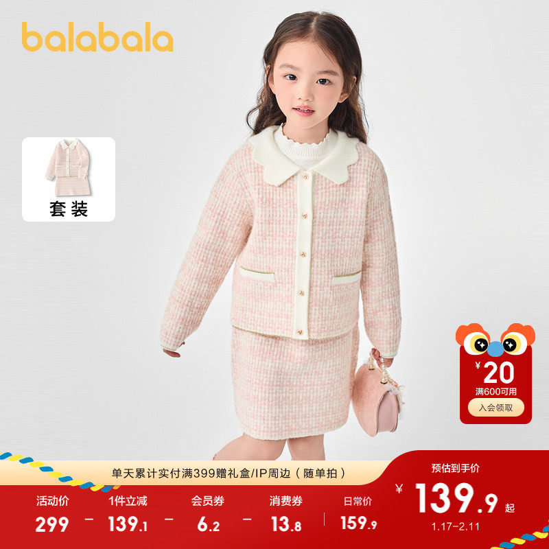 巴拉巴拉童装儿童短裙套装女童小香风两件套秋冬甜美时尚洋气小童
