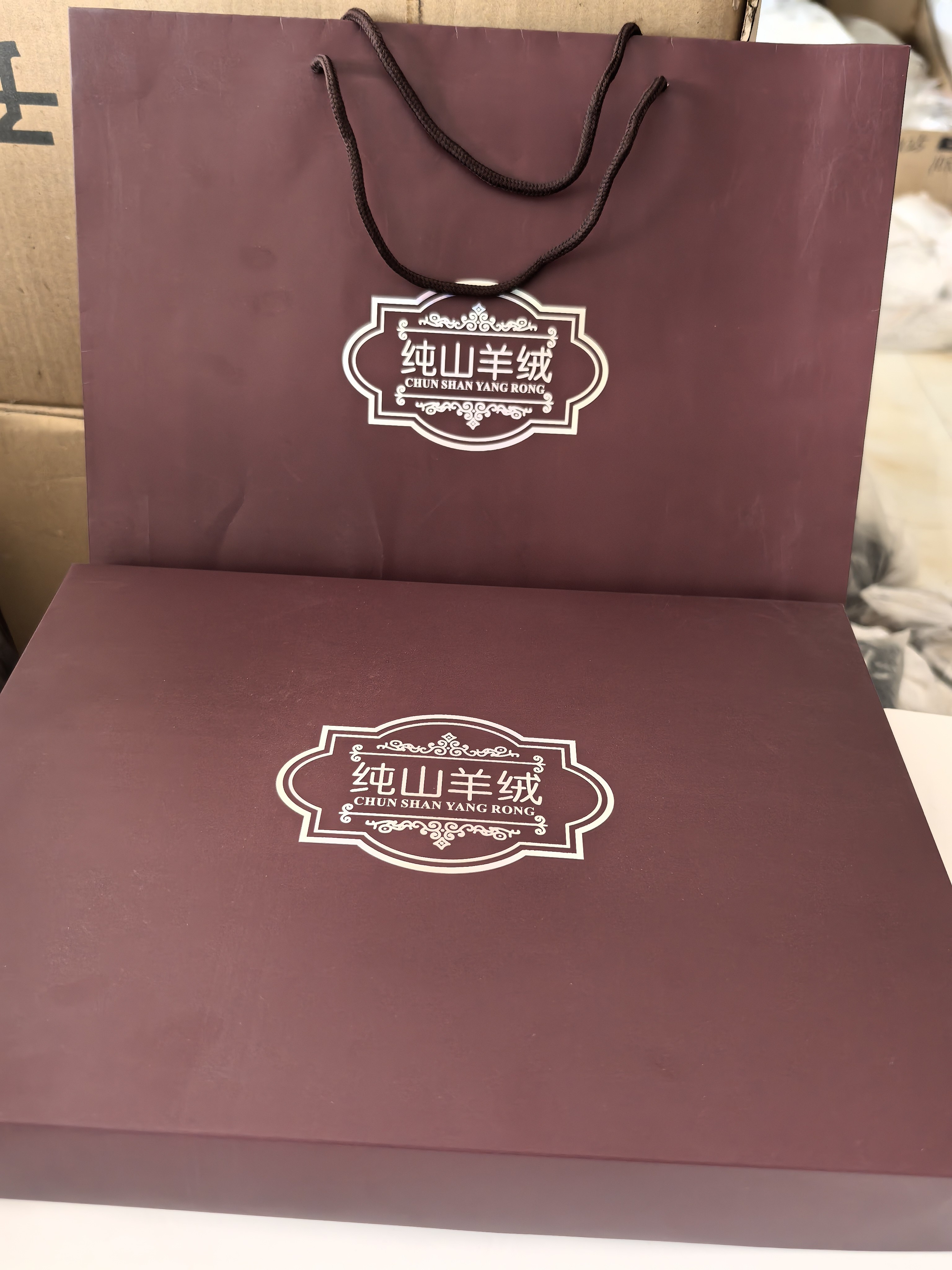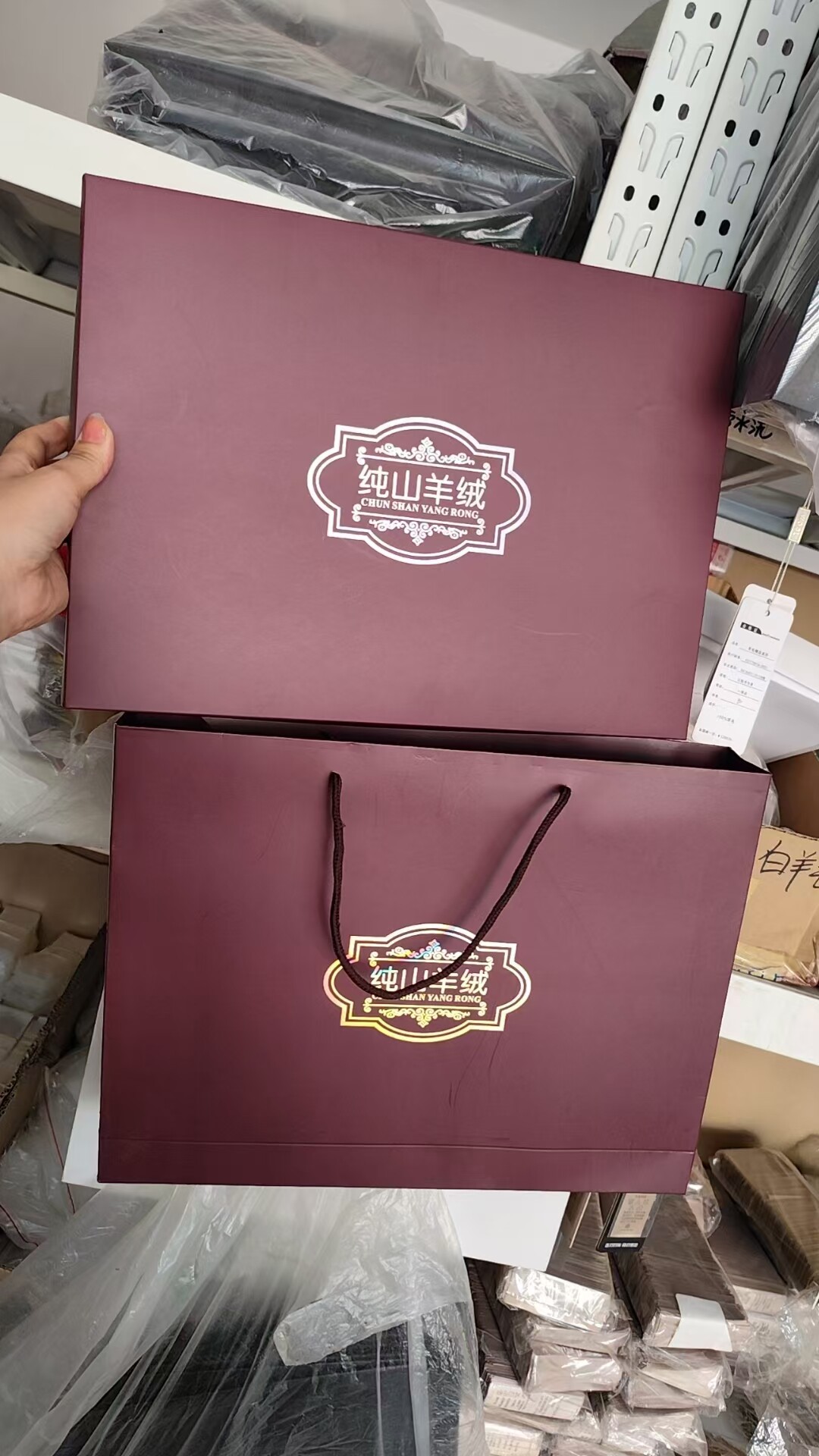 山羊绒礼品盒紫红色加厚高档羊绒衫礼盒,男款围巾披肩通用礼品盒
