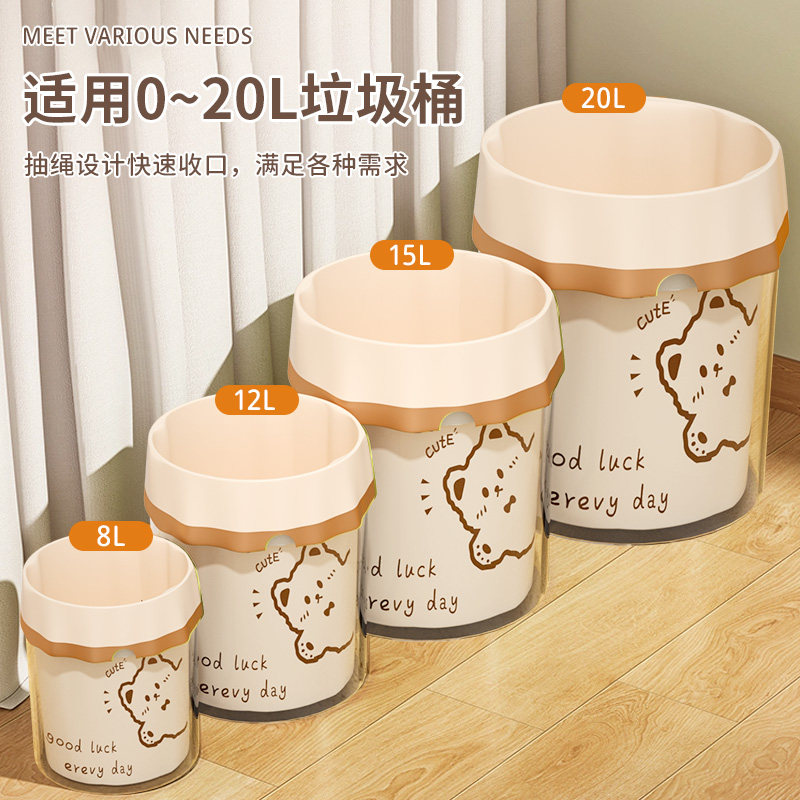 抽绳式垃圾袋家用加厚手提厨房宿舍用学生大号黑色塑料袋提拉收口