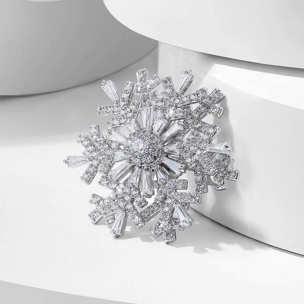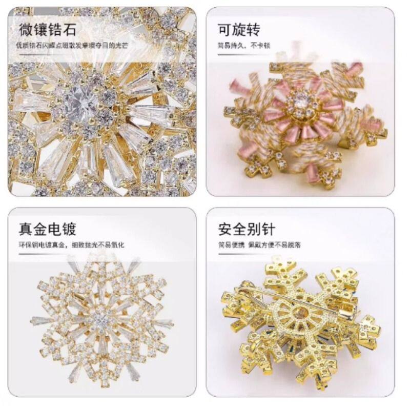 时来运转雪花胸针 高档时尚百搭胸花丝巾扣 高端西装大衣别针配饰