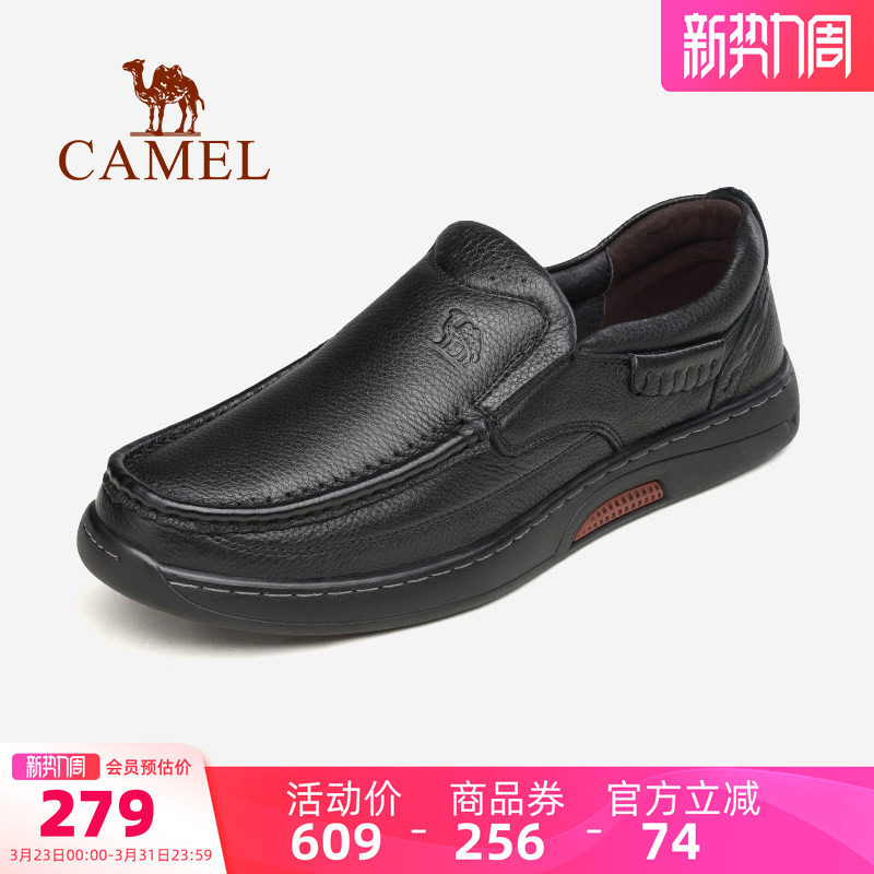 骆驼男鞋2026春季新款舒适休闲皮鞋软底46码真皮一脚蹬商务爸爸鞋