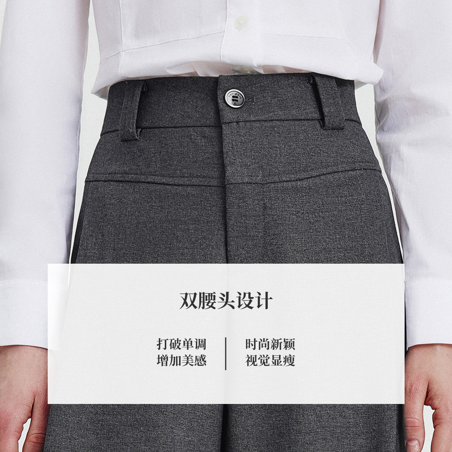 Navigare意大利小帆船灰色显瘦休闲裤女士春季新款高腰通勤直筒裤