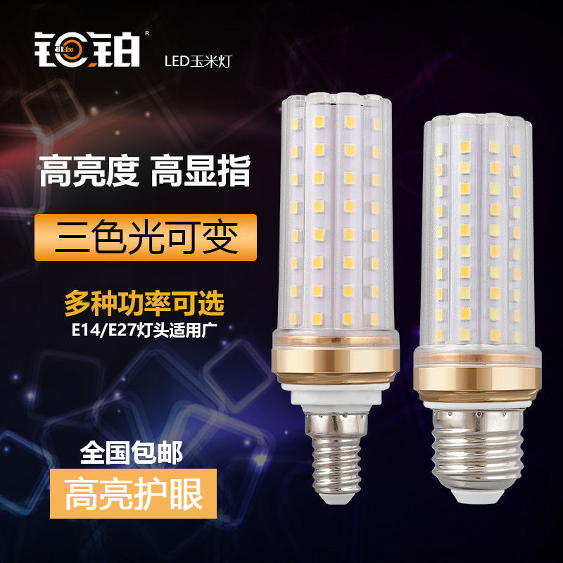 钜铂e27螺口玉米灯led灯泡节能20w三色变光吊灯客厅光源暖光超亮