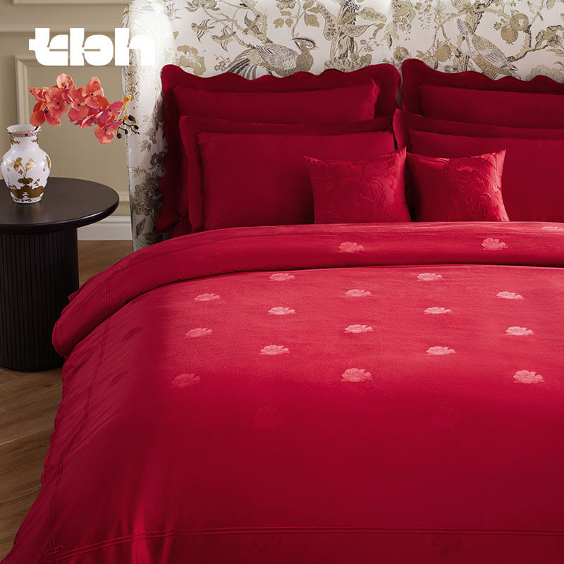 SIDANDA140支进口匹马棉婚庆四件套轻奢刺绣红色全棉结婚四件套