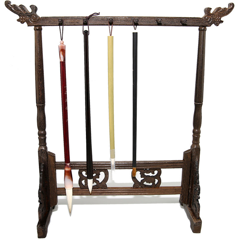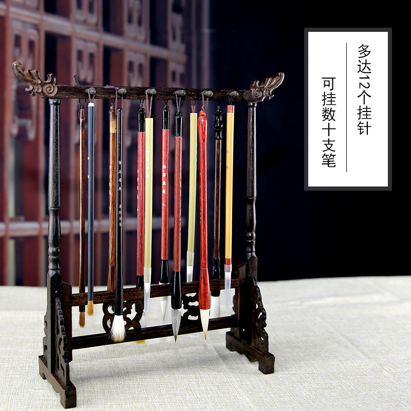 笔挂笔架12针鸡翅木红木毛笔挂笔搁木笔架书法文房四宝古德笔庄