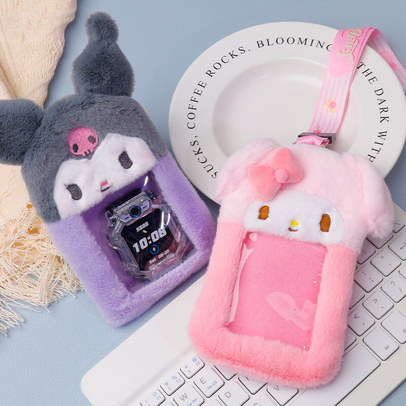 毛绒公仔卡套零钱包书包挂件可爱卡包随身挂脖包电话钥匙收纳小包