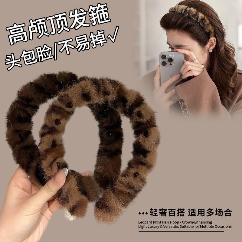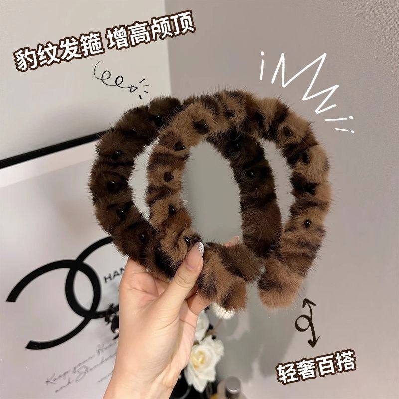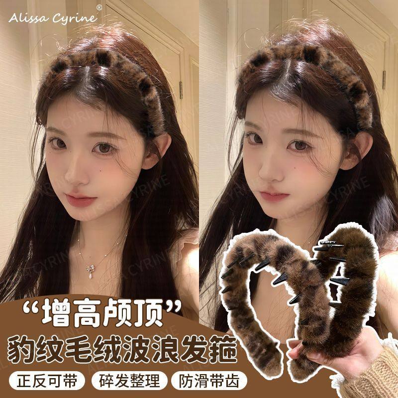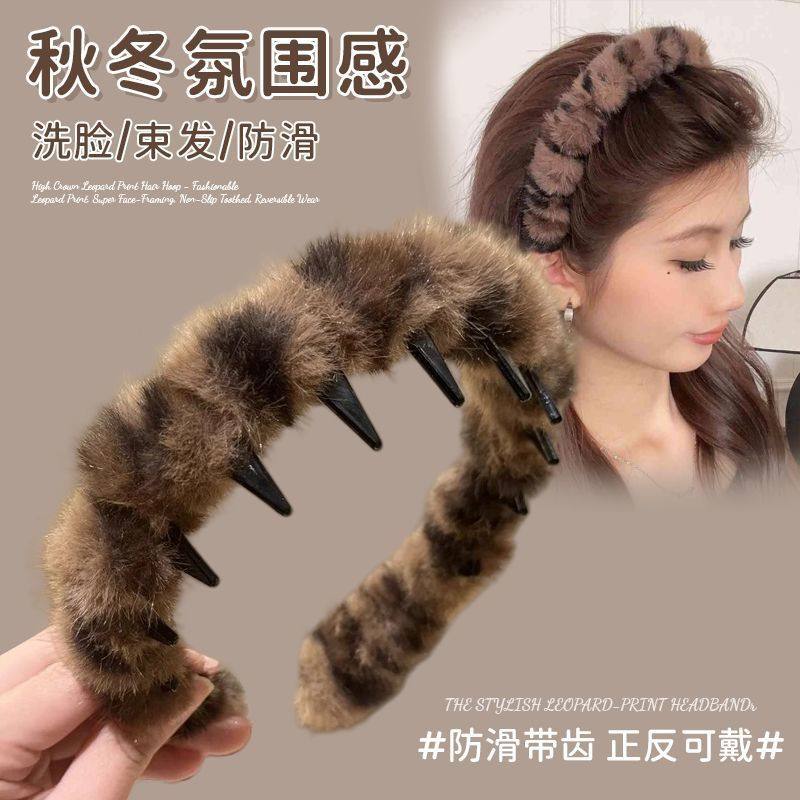 韩系复古豹纹带齿毛绒发箍女高颅顶防滑洗脸发卡头箍2025年秋冬