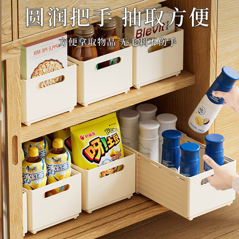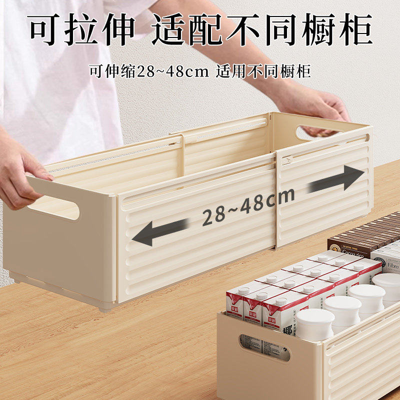 橱柜收纳盒抽屉式厨房桌面零食杂物整理盒长方形深柜储物盒伸缩