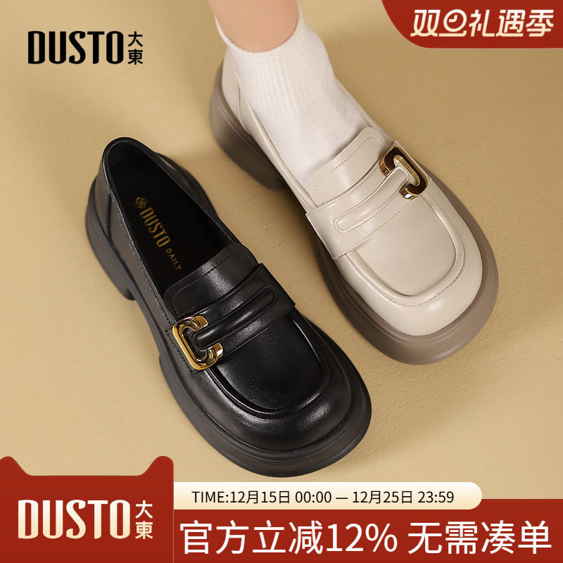 大东乐福鞋女鞋2025春新款韩版气质厚底套脚单鞋圆头小皮鞋0020