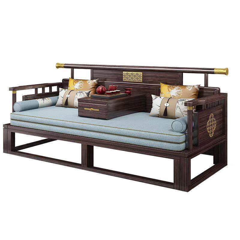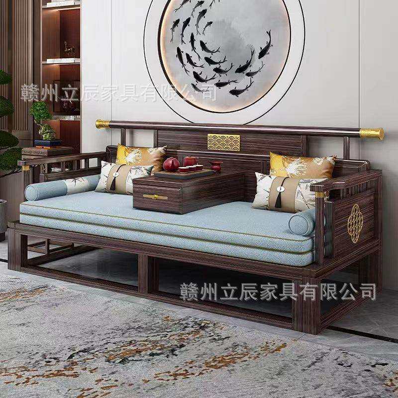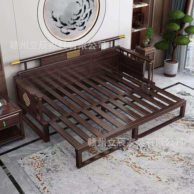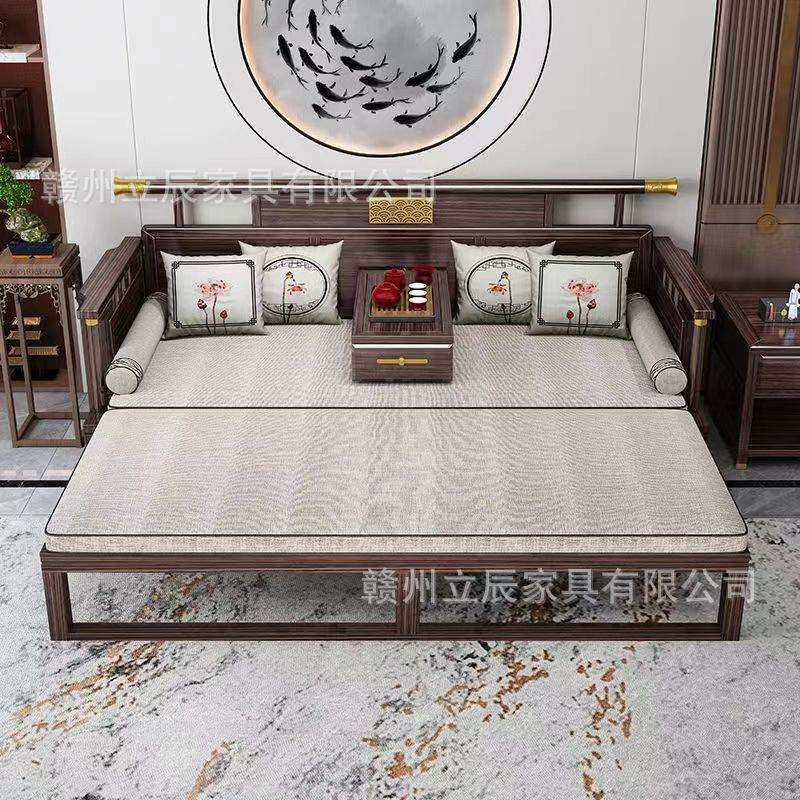 新中式乌金木实木罗汉床推拉床小户型客厅禅意简约伸缩两用沙发床