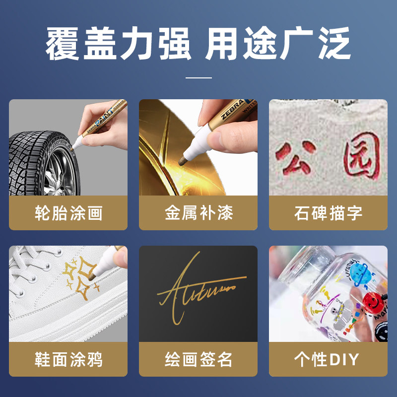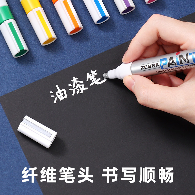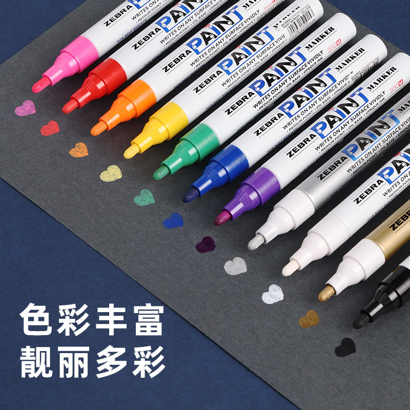 日本ZEBRA斑马油漆笔耐水不易掉色工业速干彩色记号家具修补补漆笔签名涂鸦DIY手绘银色油性笔