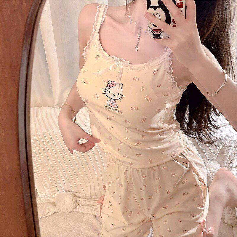 kitty猫睡衣女款夏季纯棉吊带2026新款带胸垫性感家居服短裤薄款