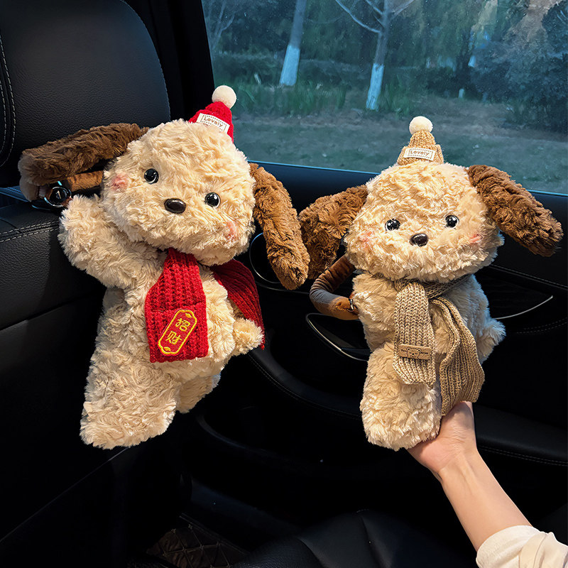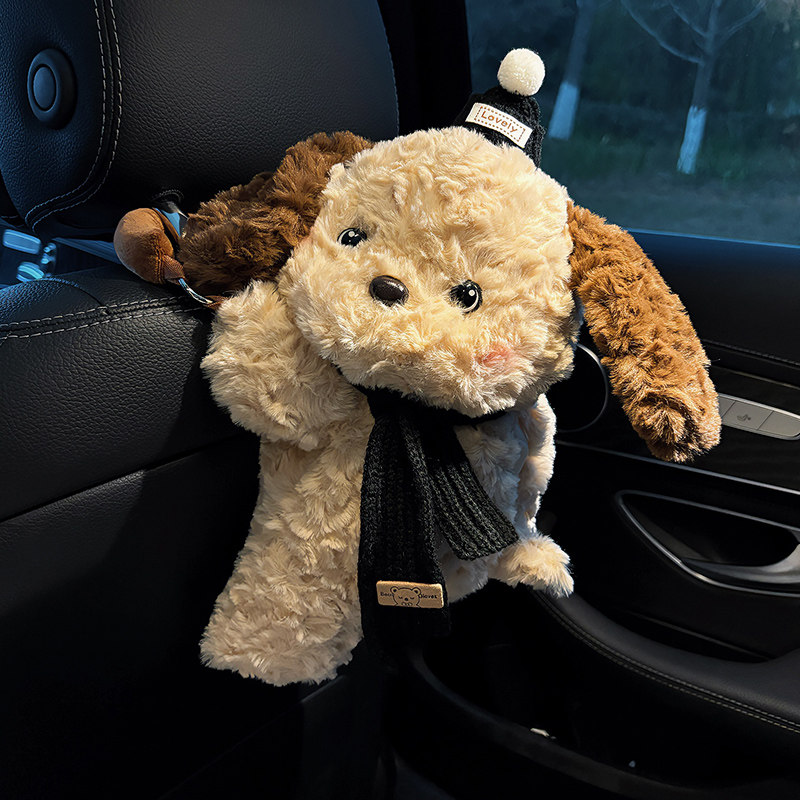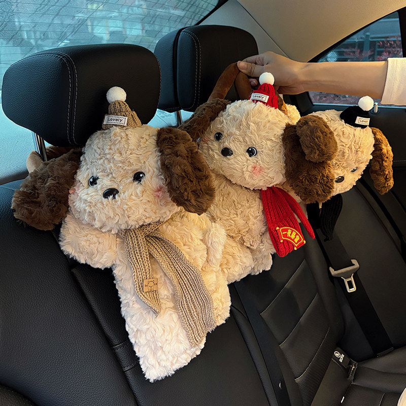 车载纸巾盒创意可爱小狗装饰抽纸盒车内挂式汽车纸巾袋车用纸抽盒