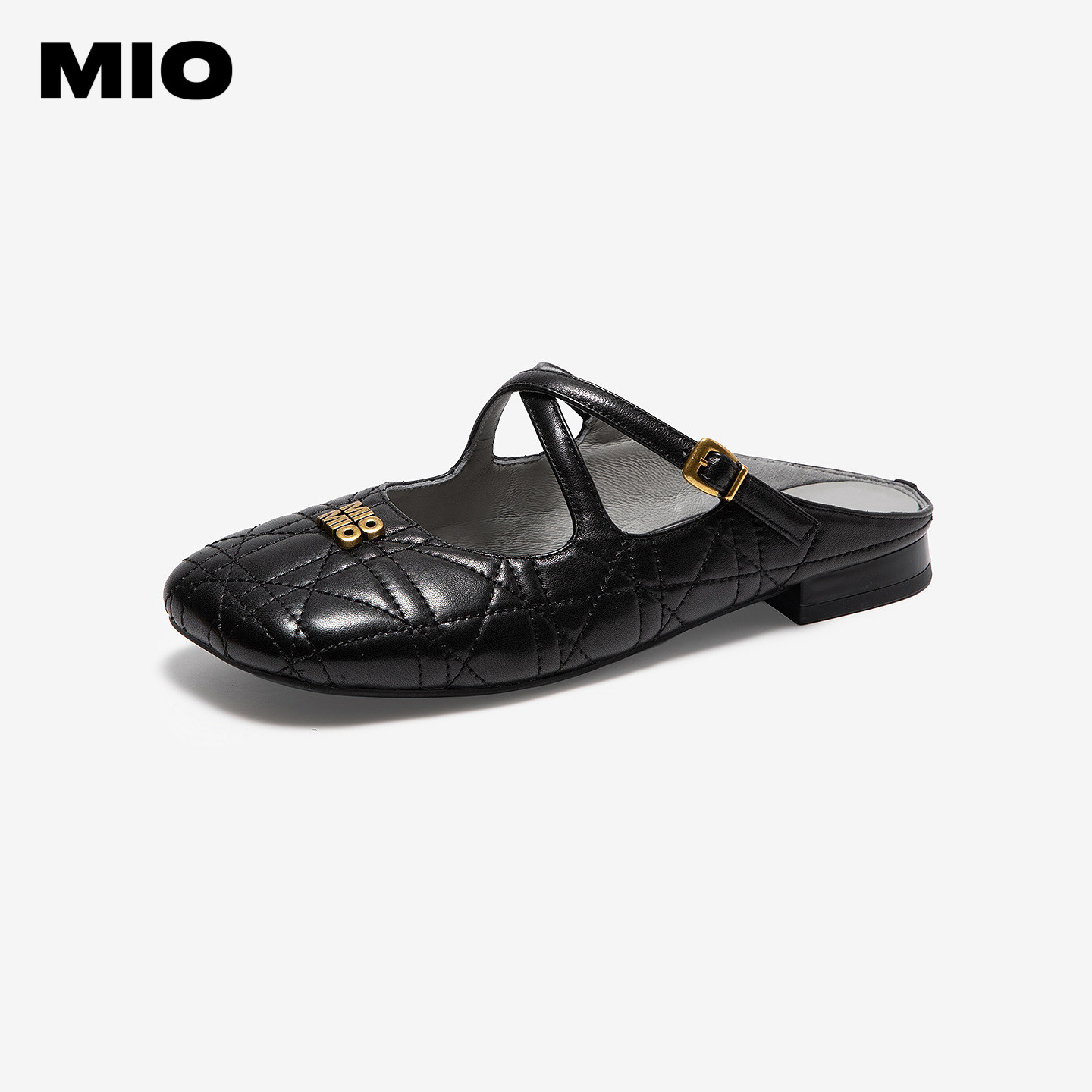 MIO米奥女鞋2026夏季新款菱格交叉绊带miu系单鞋包头拖鞋时装凉鞋