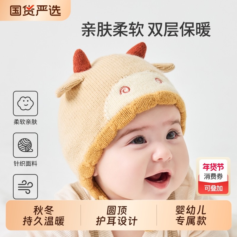 婴儿帽子秋冬季新生儿护耳针织帽小月龄女宝宝冬天胎帽防风毛线帽