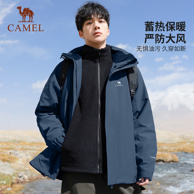 骆驼户外雨神冲锋衣男三合一羽绒服冬季防水外套女三防旅游滑雪服