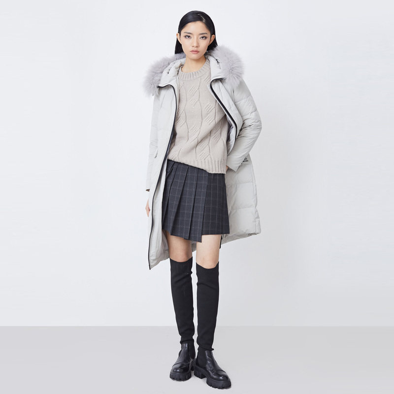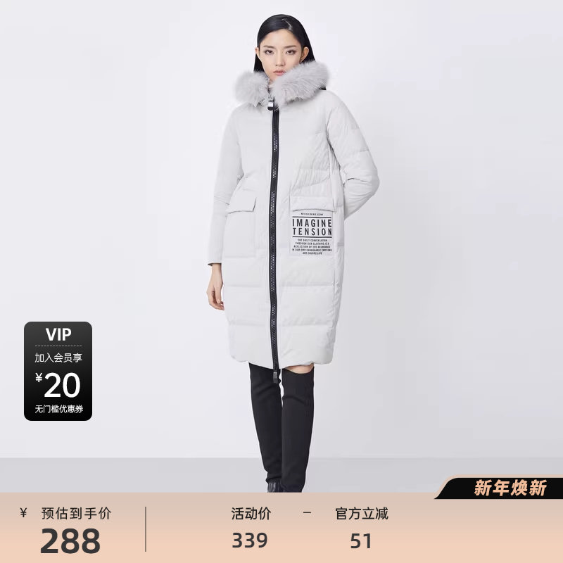 鸭鸭中戏pro羽绒服女冬季反季中长款羽绒服过膝加厚95绒波兰鸭绒J