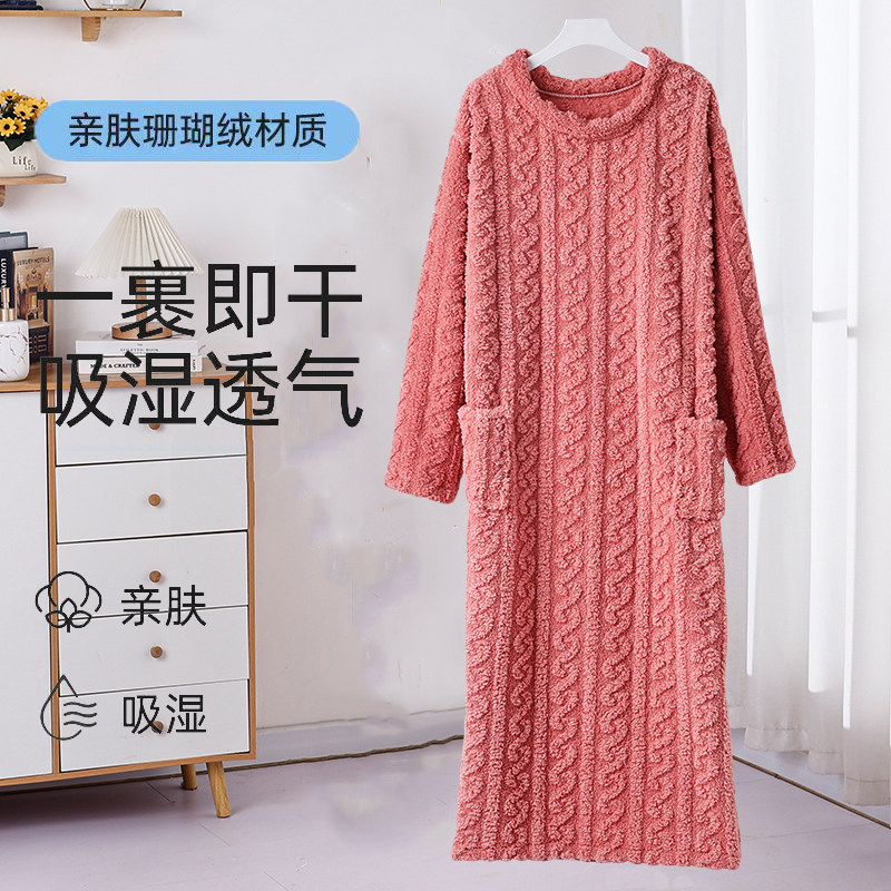 行走的大被子浴裙浴袍提花长款宽松加厚家居睡袍睡裙女士冬季睡衣