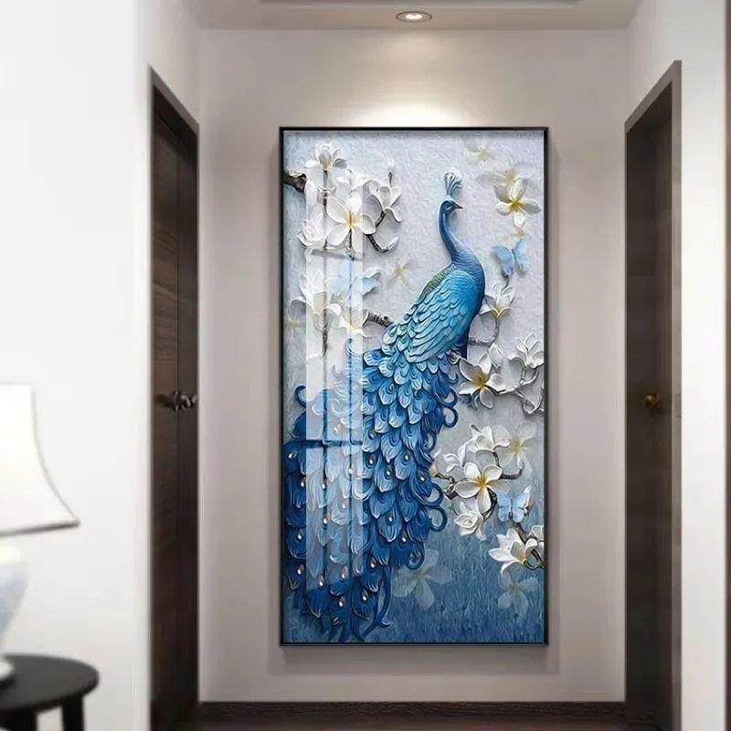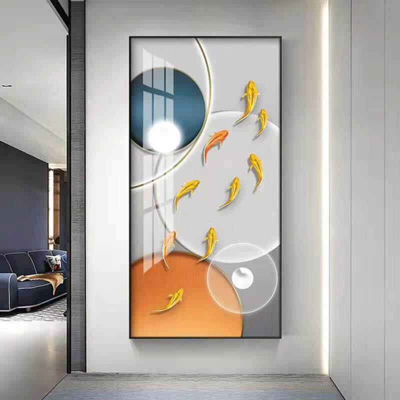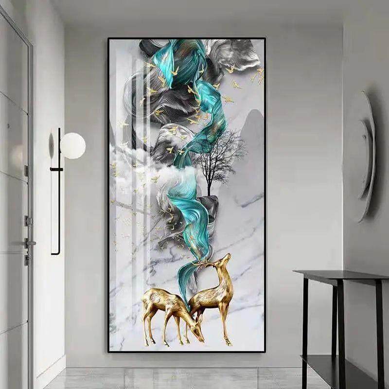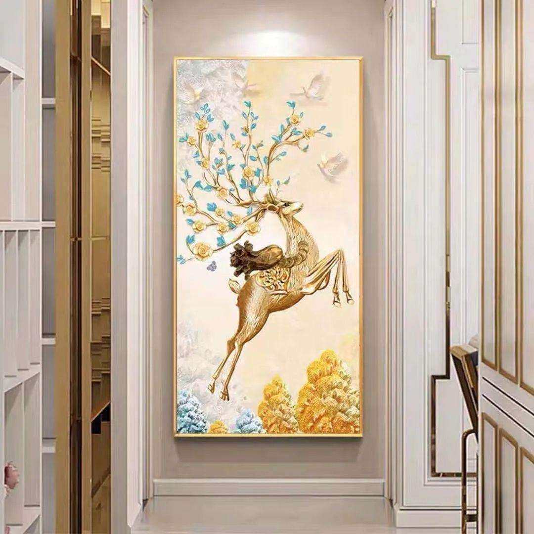 入户玄关装饰画走廊墙壁画竖版现代简约北欧客厅麋鹿晶瓷镶钻挂画