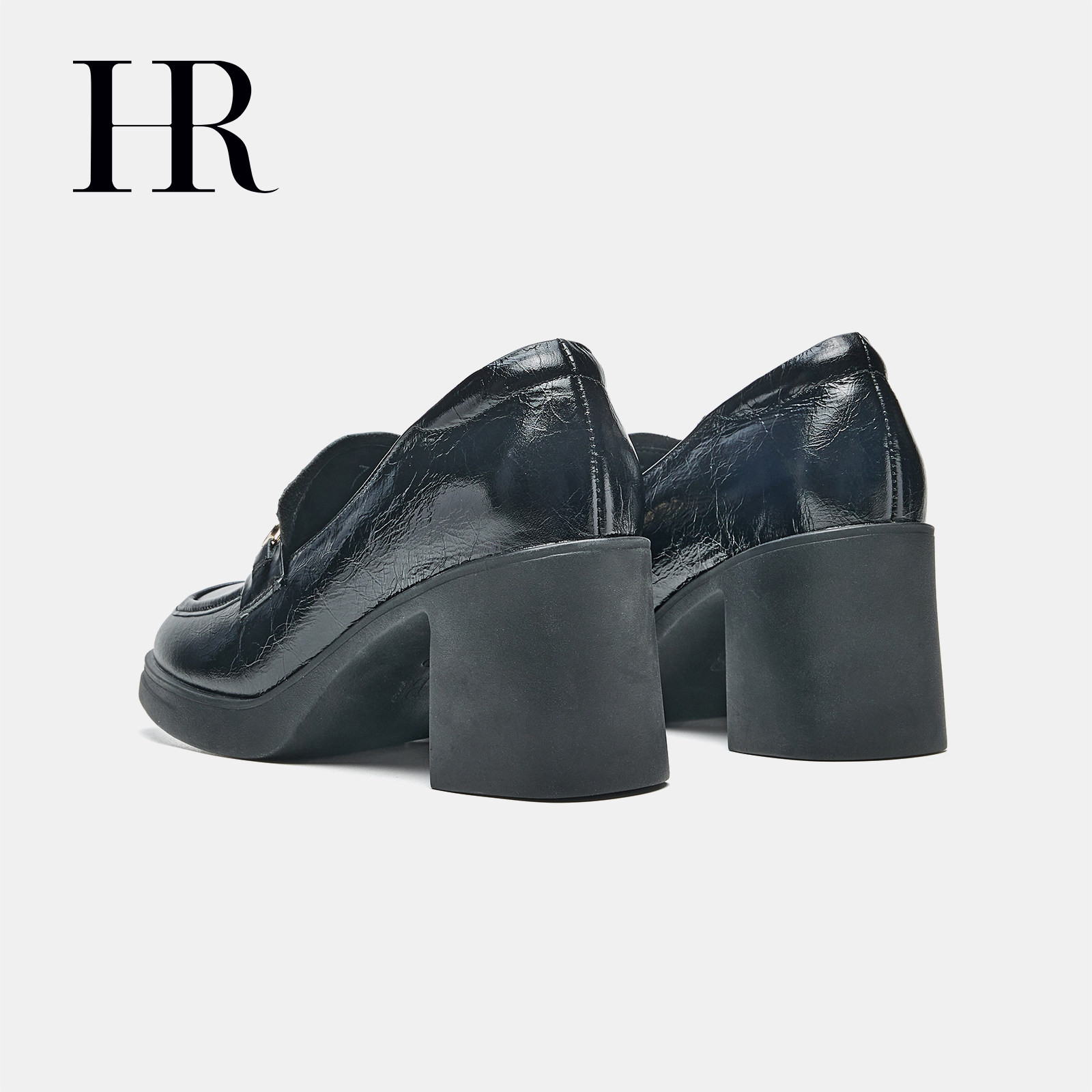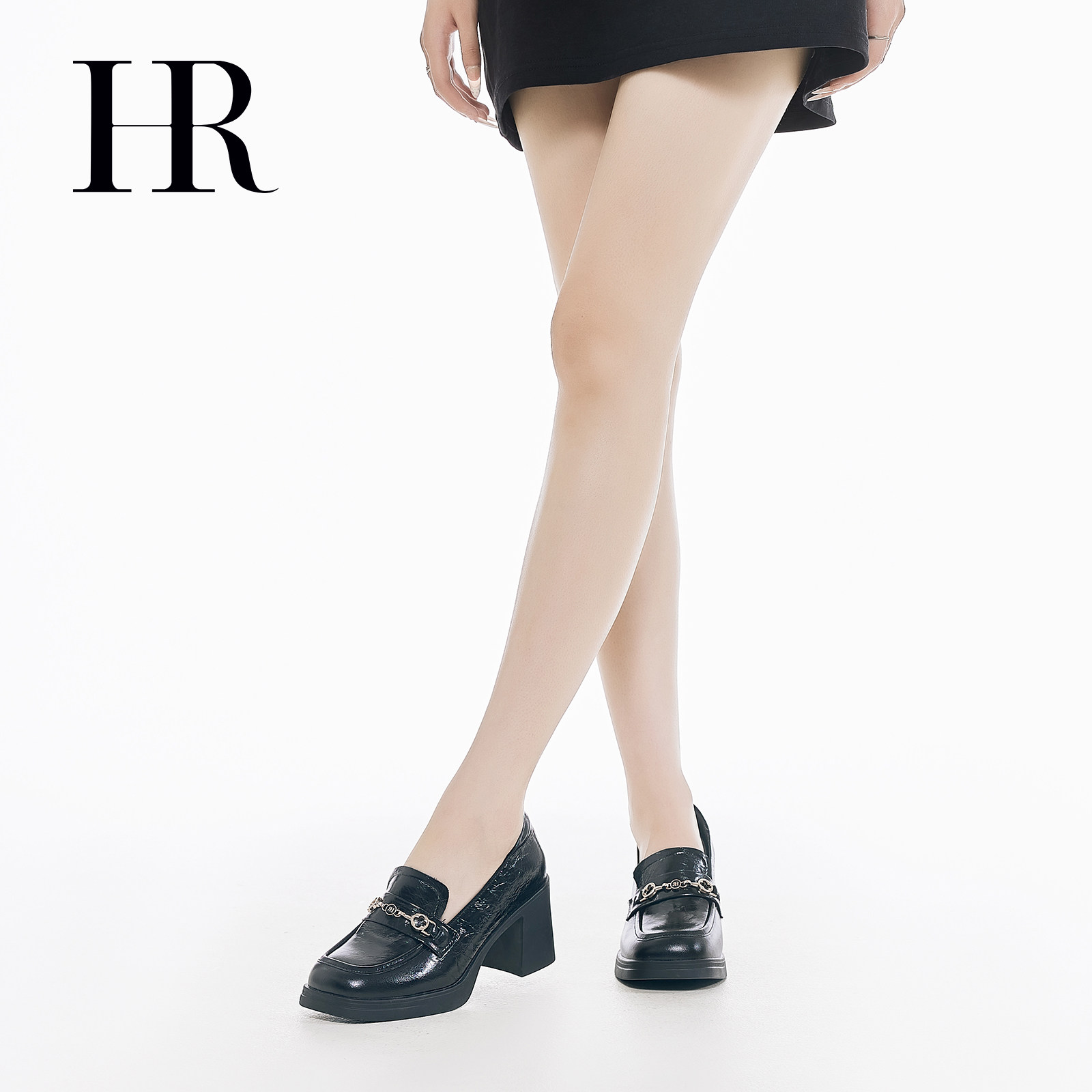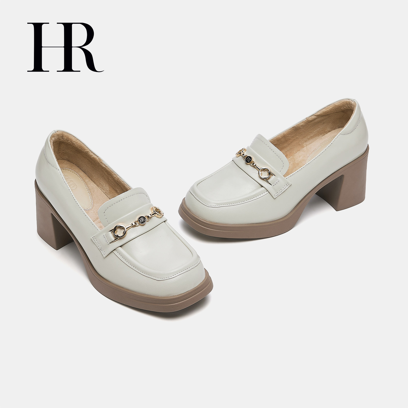 HR赫莲娜女鞋子2026年夏季新款乐福鞋粗跟牛皮复古英伦浅口小皮鞋
