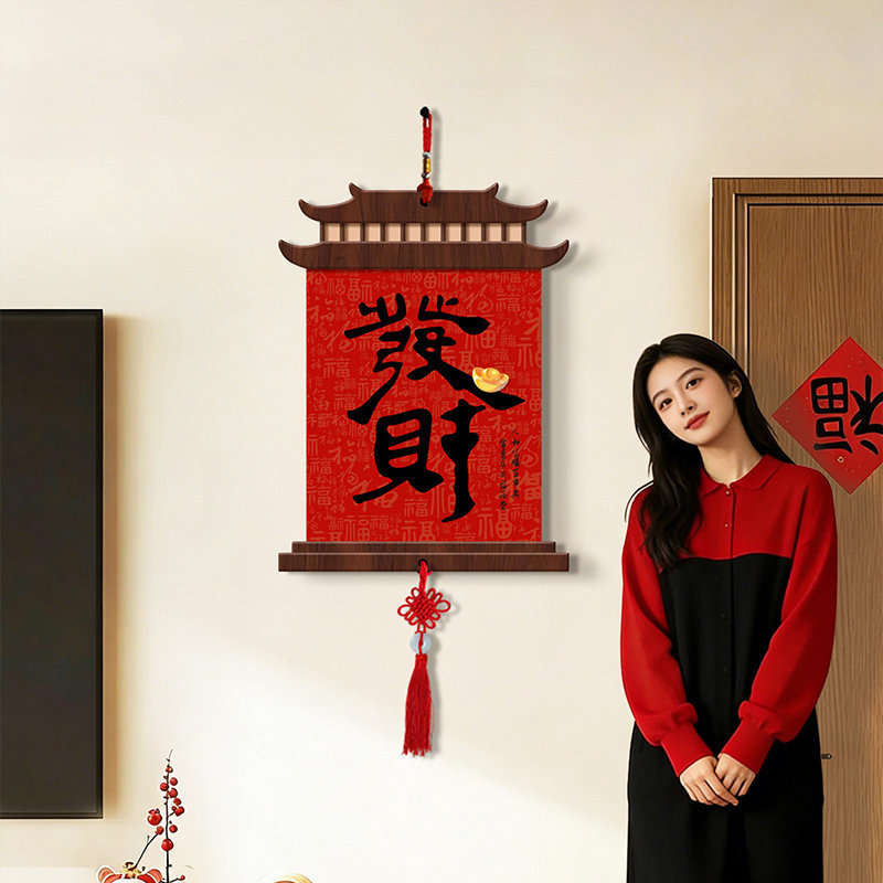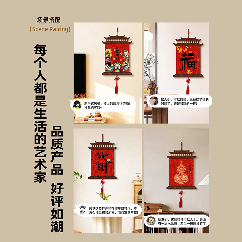 新中式福禄中国结挂件新年装饰画五福临门沙发电视背景墙挂画走廊