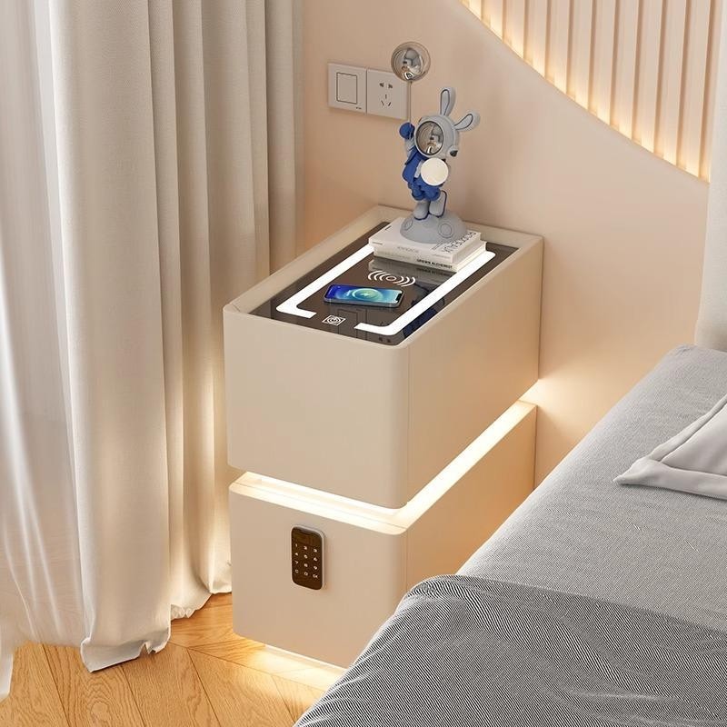 超窄智能悬浮床头柜现代简约无线充电小型轻奢卧室实木柜子隐藏式