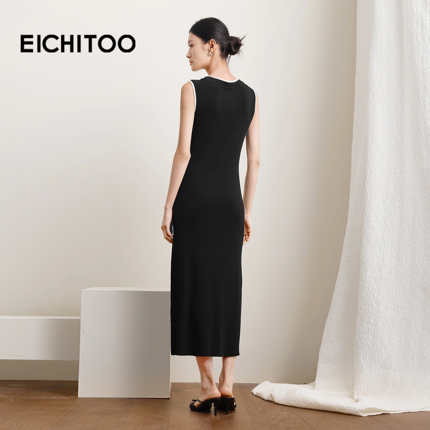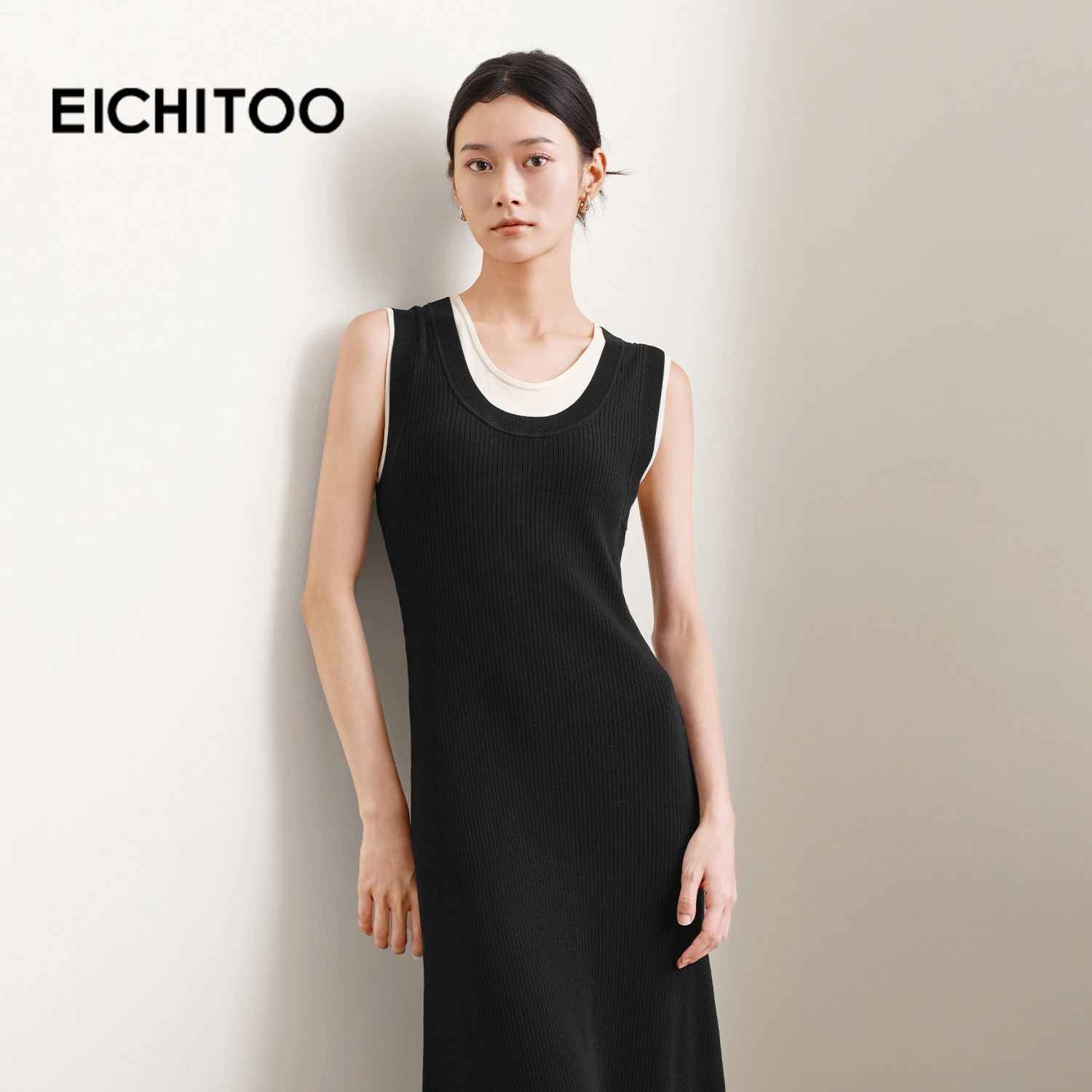 爱居兔假两件修身背心连衣裙女2025年秋季新款休闲百搭针织长裙