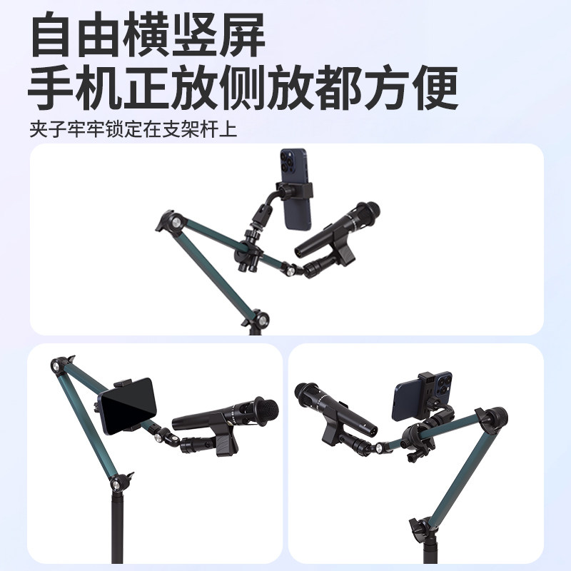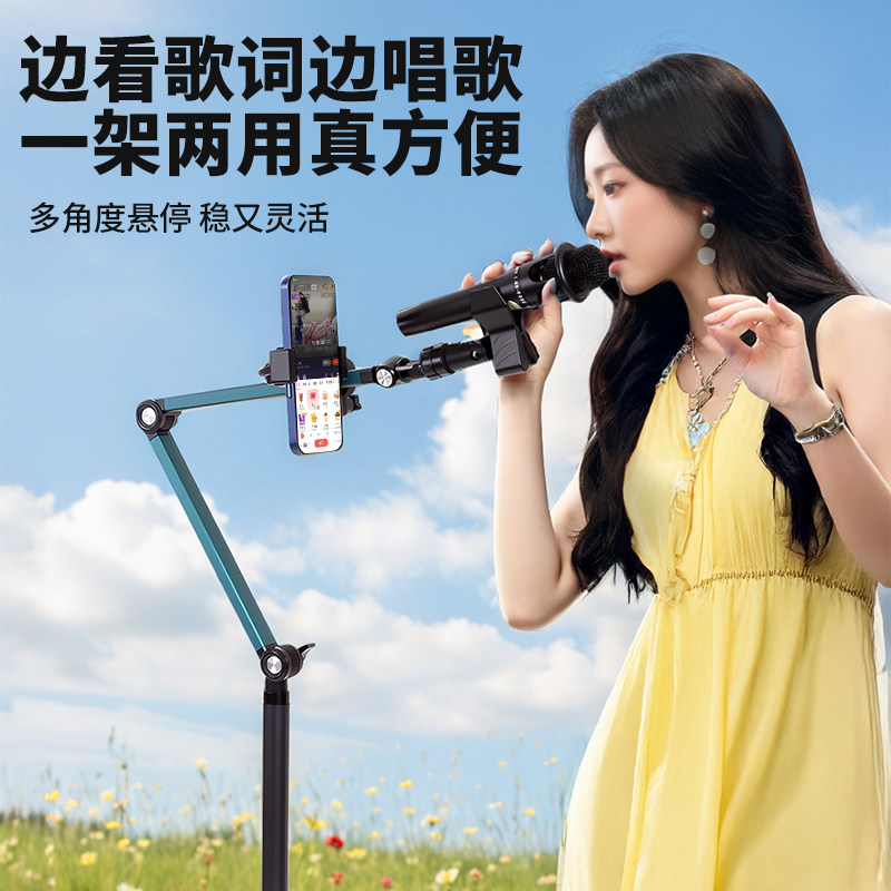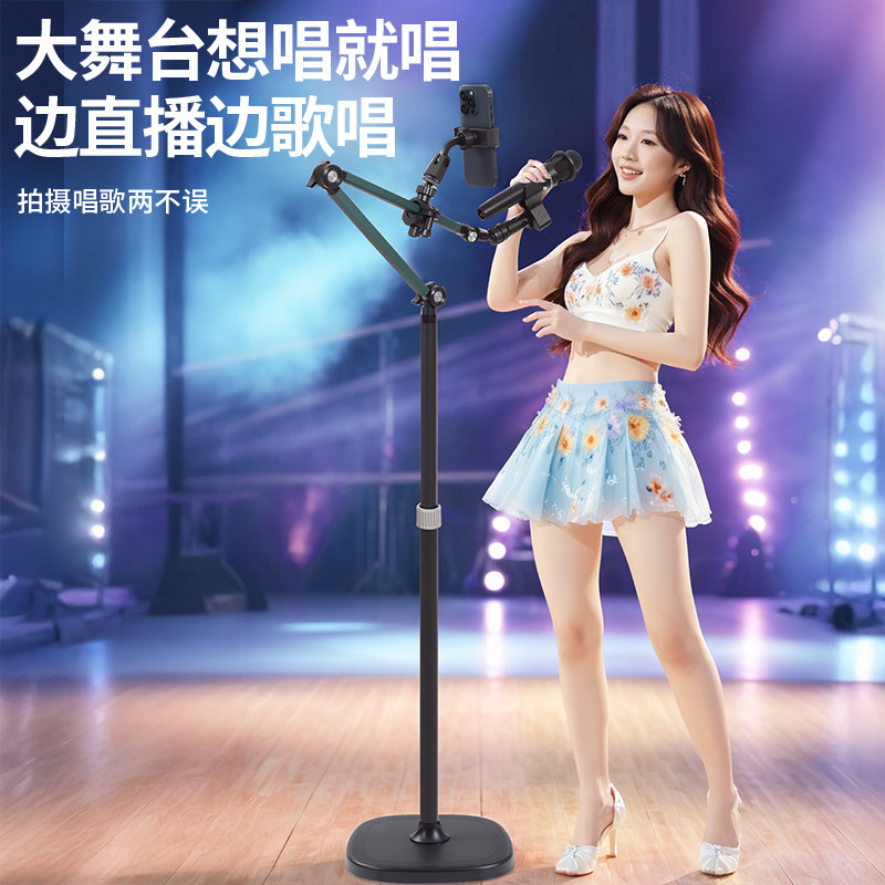 麦克风话筒支架落地悬臂金属圆盘架可升降户外手机直播唱歌演出架