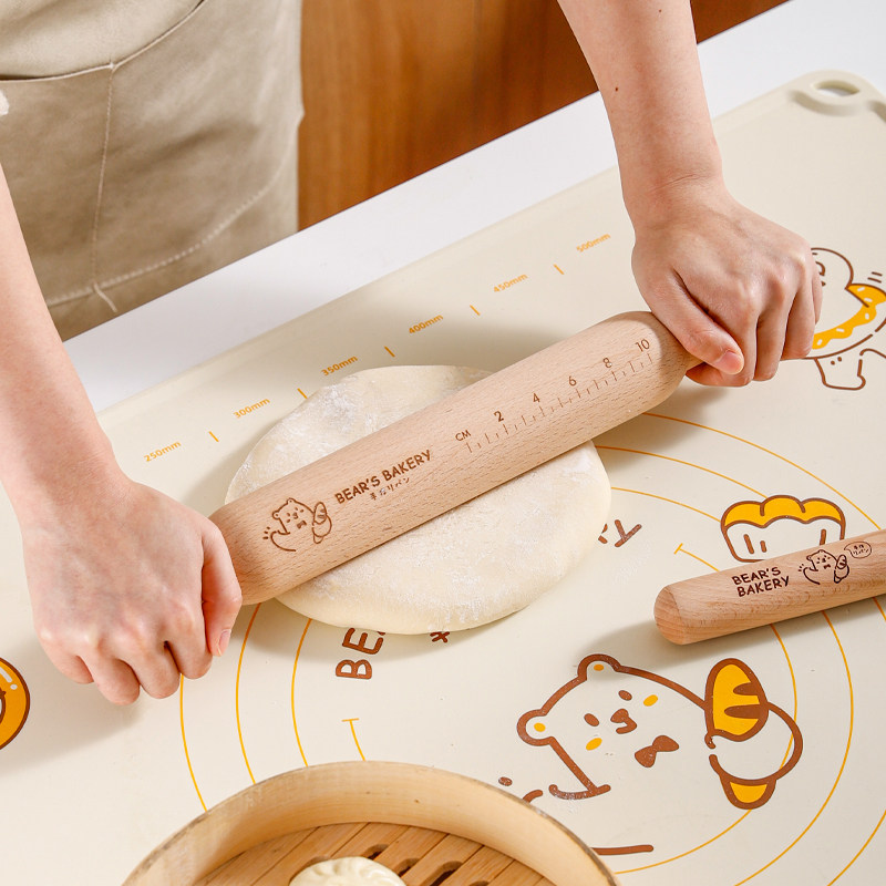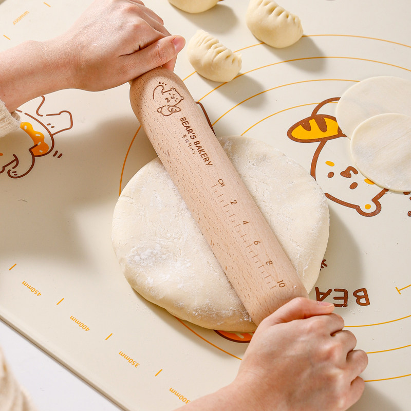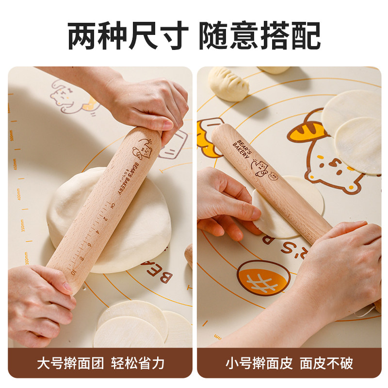 川岛屋熊dodo擀面杖家用实木滚轴烘焙工具包子饺子皮擀面棍三件套
