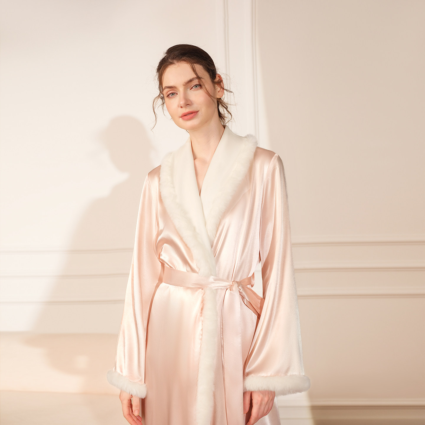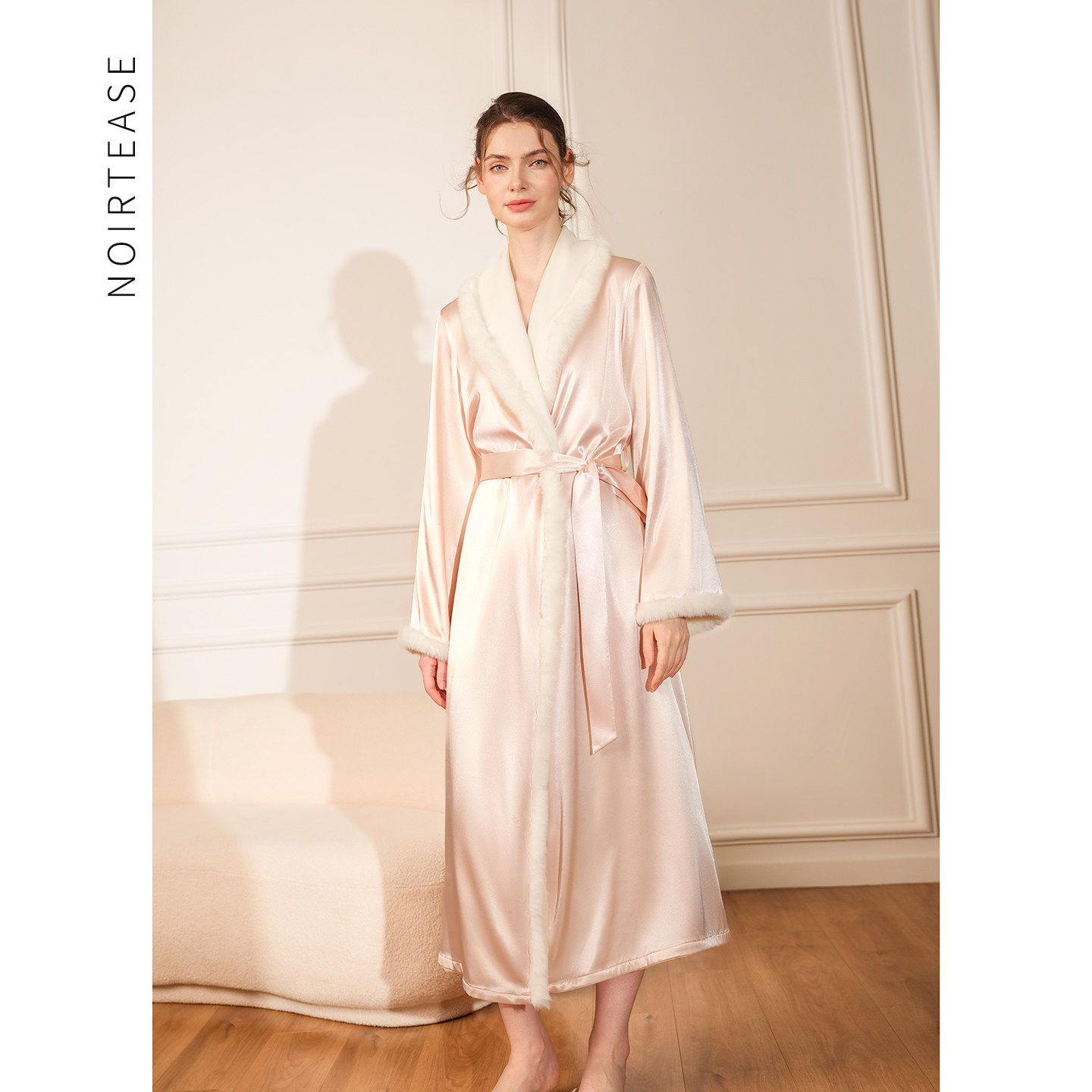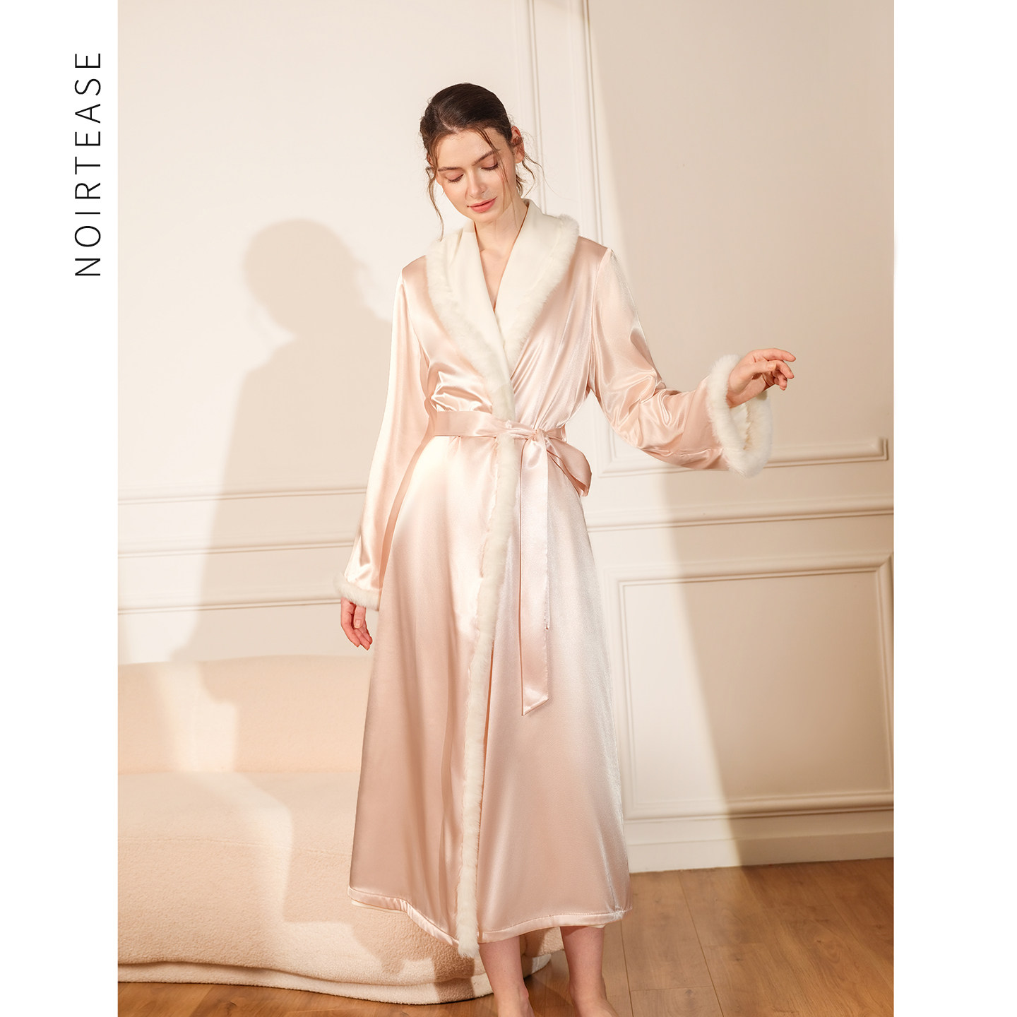 NoirTease秋冬加绒加厚睡衣睡袍女士冬季丝质毛绒浴袍轻奢家居服