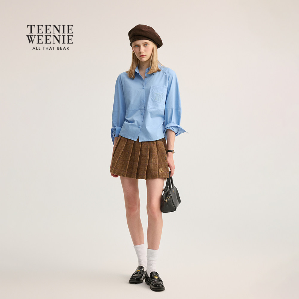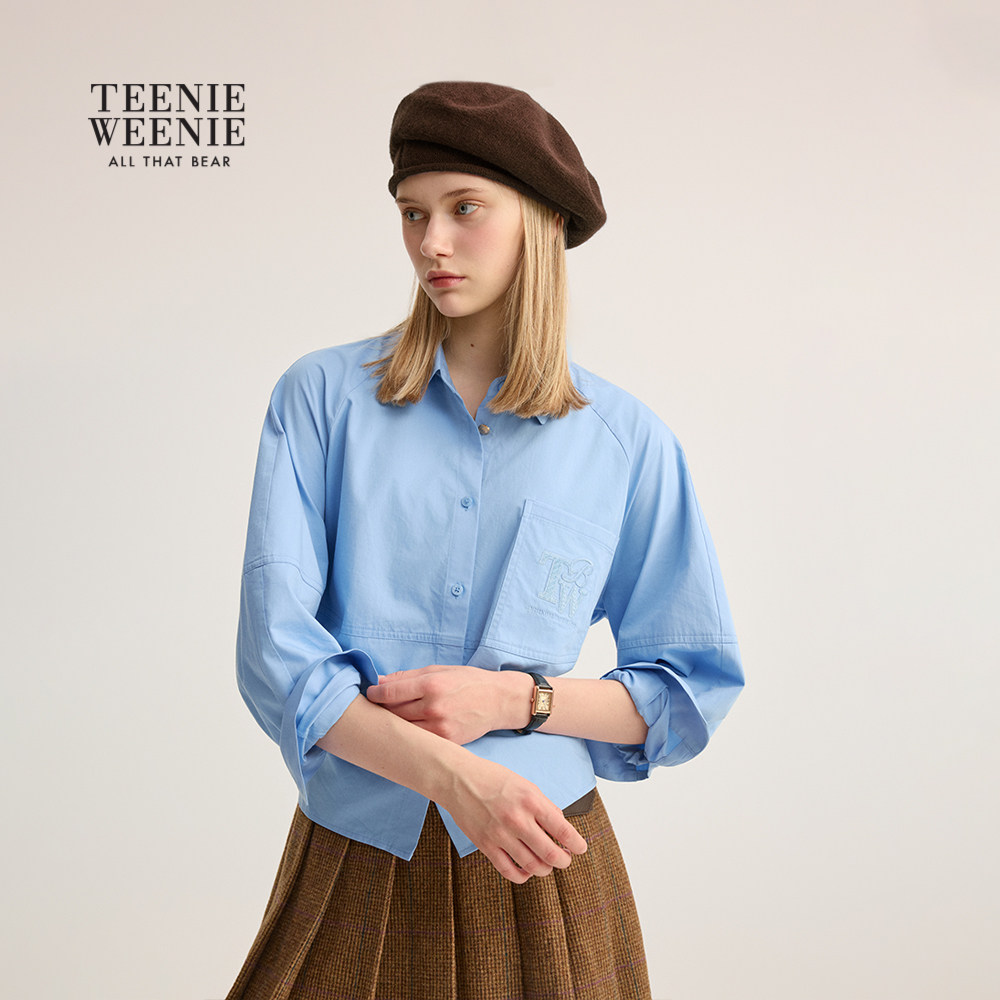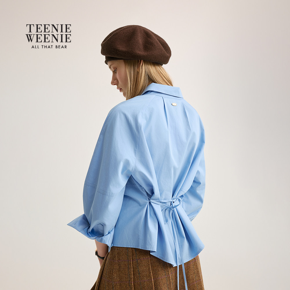 TeenieWeenie小熊女装衬衫2025秋季新款简约气质时髦腰带设计衬衣
